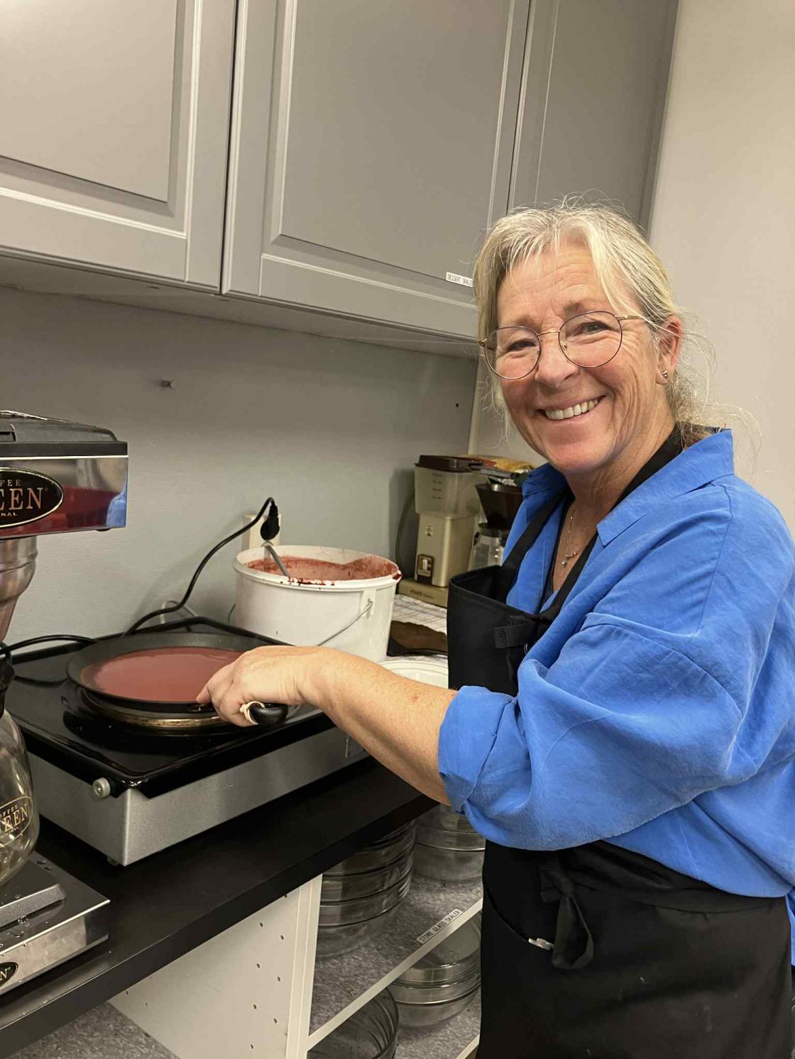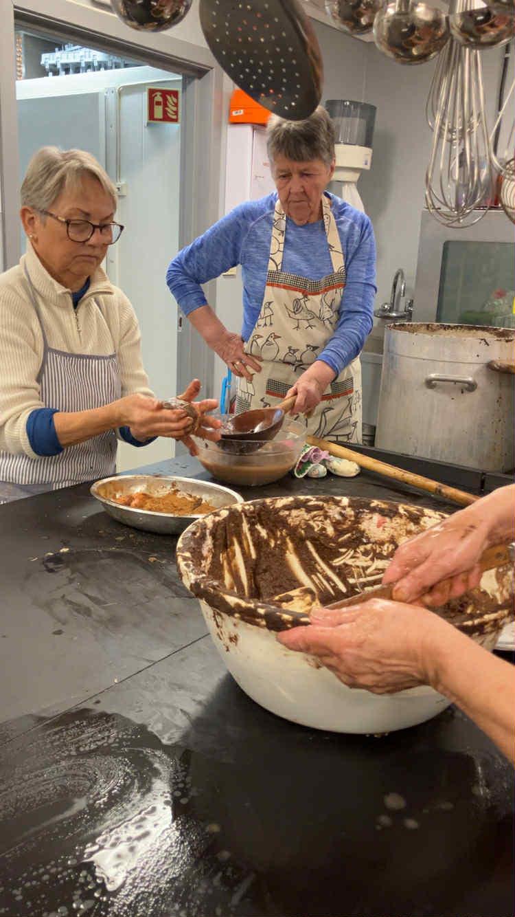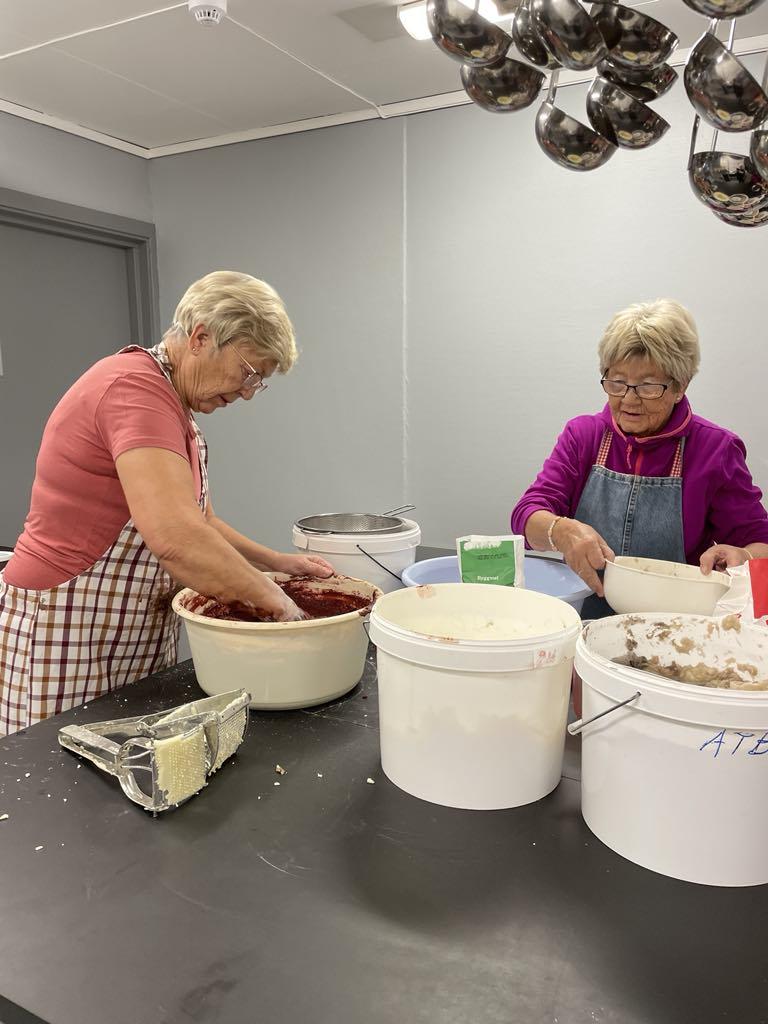 Kafè med tradisjonsmat som supanesoppa, blodkodler og blodpannekaker fekk bein å gå på. Ca 700 blodpannekaker og 360 blodkudler vart produsert og fortært. Damena starta produksjonen allereie tysdag før messa, og vidare var det full produksjon onsdag, torsdag og fredag. Her er det eit stort stykke arbeid som vert lagt ned!