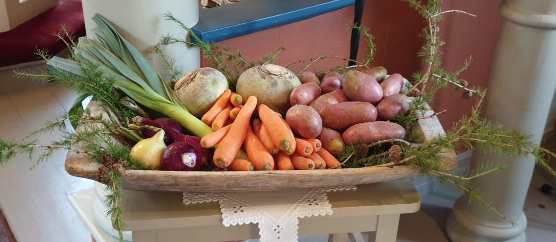 I tradisjons tro pyntet Eidsbygda Bygdekvinnelag Eid kirke til Høsttakkegudstjenesten.