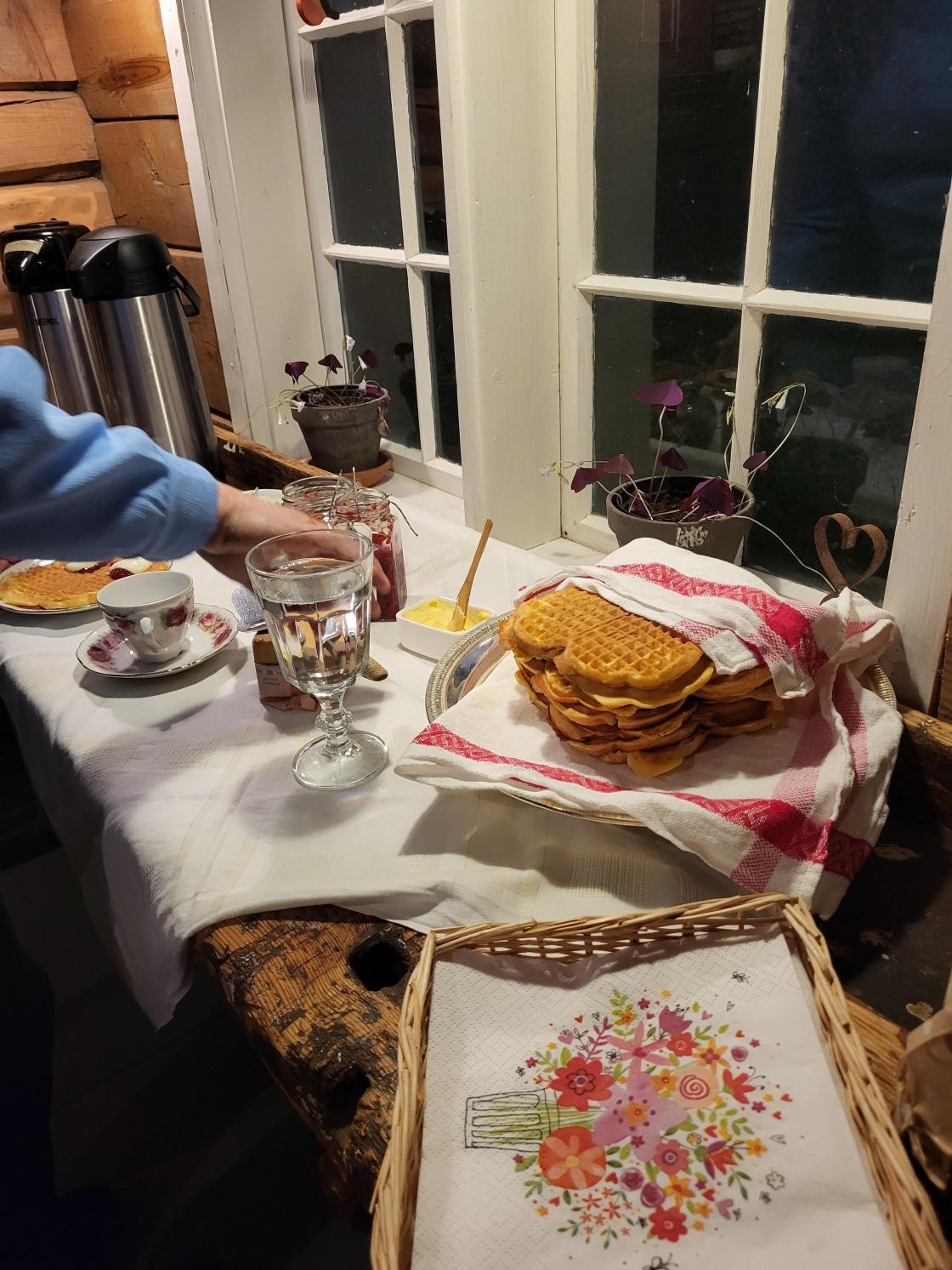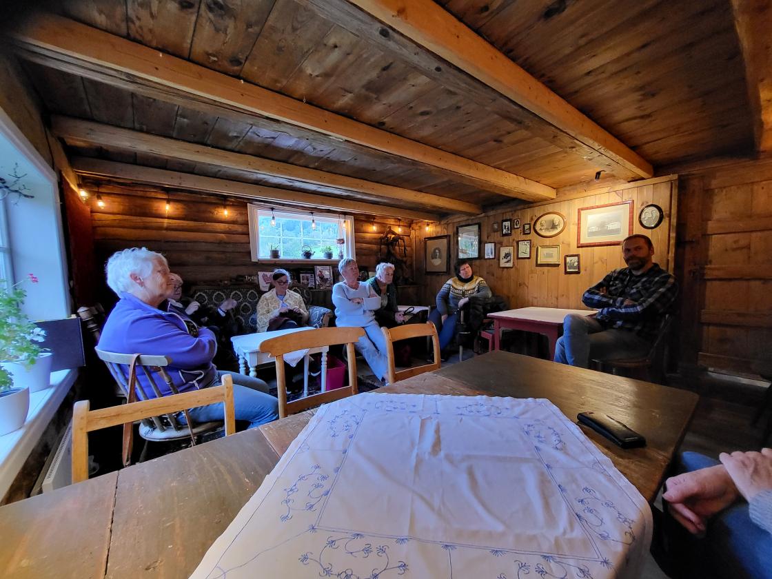 Det ble omvisning i grønnsakshagen og drivhuset før turen gikk inn i Tullistua. Der fikk vi først høre historia om gården før ei omvisning i huset som rommet mye historie. Vi fikk servert nystekte vafler, og kvelden ble avsluttet med nydelig musikkinnslag av Svein Gunnar. En utrolig koselig kveld! Takk for at vi fikk komme på besøk 🌸