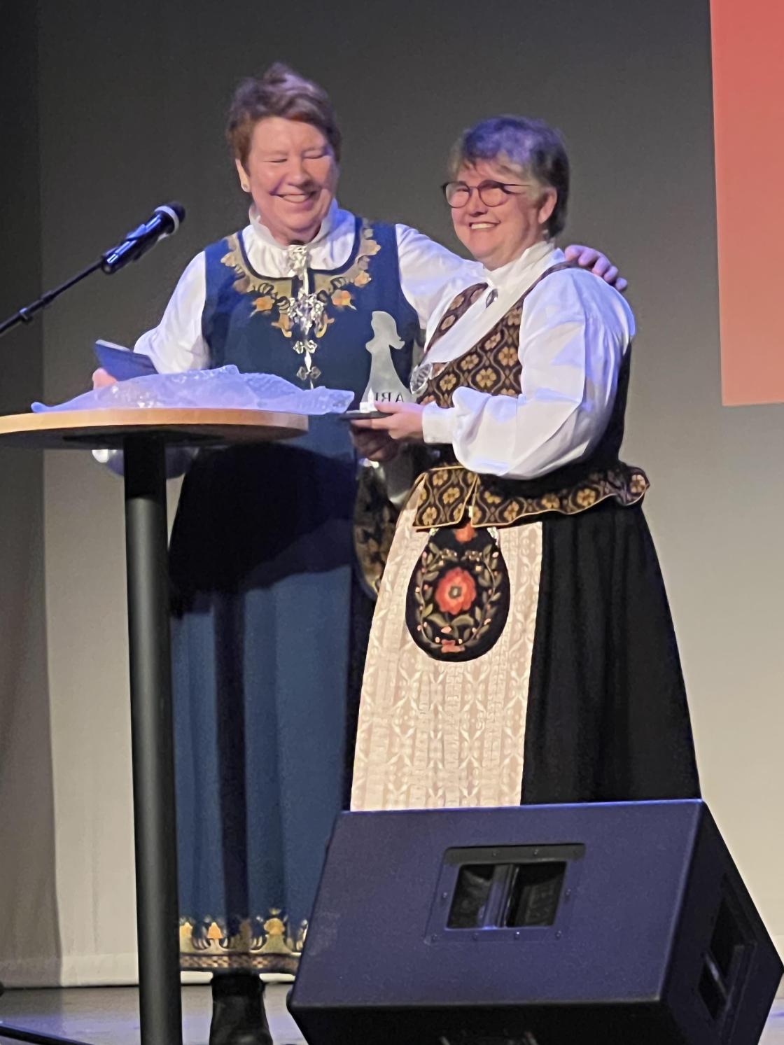 Leder i Eidsvoll Bygdekvinnelag Unni Tømte avsluttet kvelden med en tale som opplyste de nesten 200 i salenom lagets program og temaer i 2025. Gjestene ble oppfordret til å melde seg på kurs og møte opp på arrangementer – for i bygdekvinnelaget er alt åpent for alle. Så også denne kvelden som så mange hadde funnet veien til.
