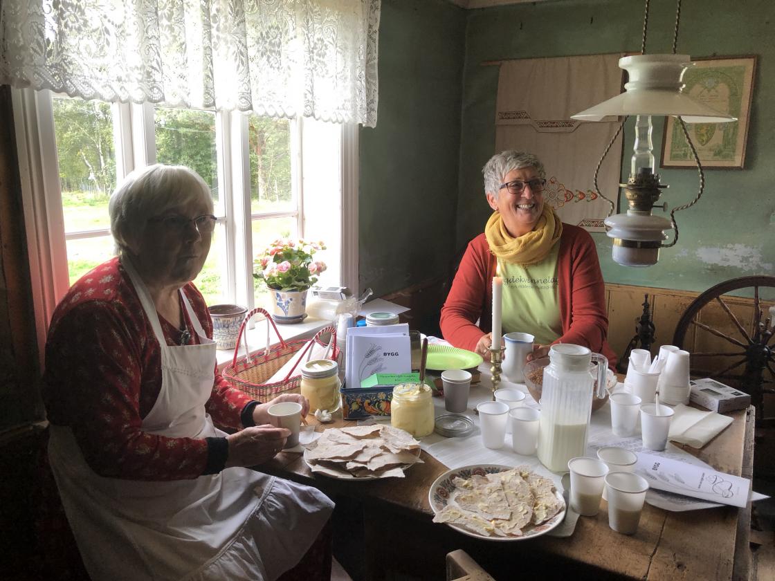 Søndag 9 sep 2018 var det Museumsdag i Årskog Museum på Fitjar, og Fitjar Bygdekvinnelag bakte flatbrød, kinna smør, hadde laga sviske og byggryns desert og me hadde saup, alt dette hadde me smaksprøver på. Mykje folk kom for å smake, og alt var utruligt godt.