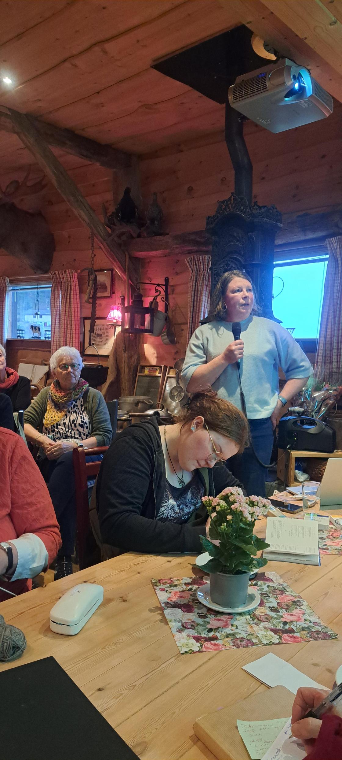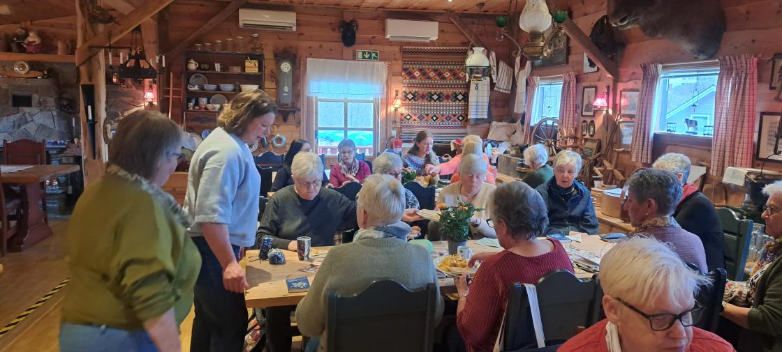 Elles var kvelden full av god stemning. Anne Marie fortalde livleg om kvinnesak og engasjement i bygdene, der kvinnene har vore arbeidsfolk i all den tid.