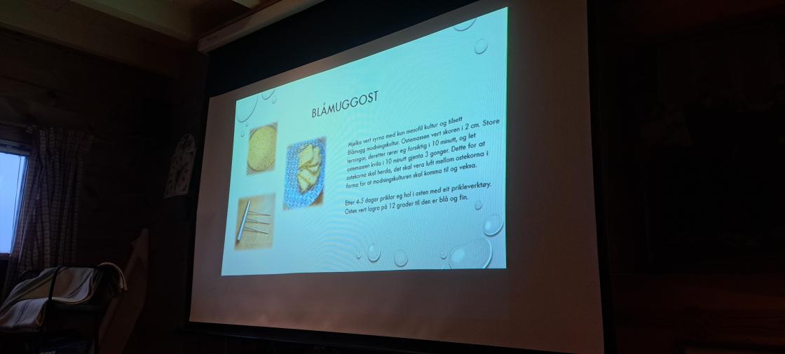 Me var så heldige å få besøk av Tone frå Hogste Gardsmat. Ho heldt eit inspirerande innlegg om ysting, og korleis dette lett kan gjerast heima. Me fekk smaka på deilig Hallomi-ost, denne var steikt og vart servert på flatbrød. Elles vart det ståande buffet kring både yoghurt, brunost og det nyaste prosjektet hennar; blåmuggost.