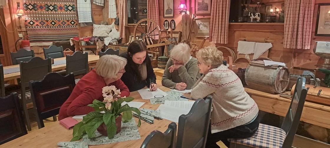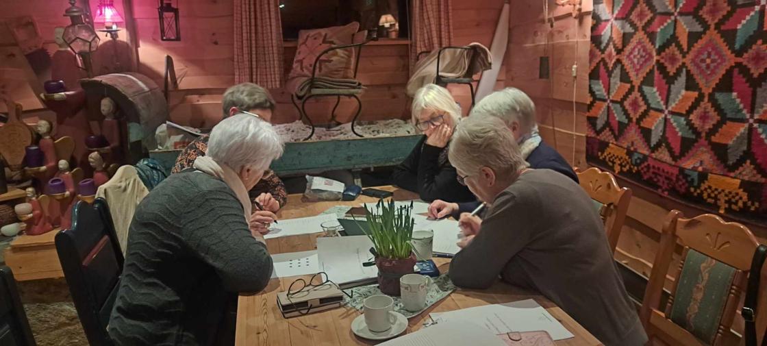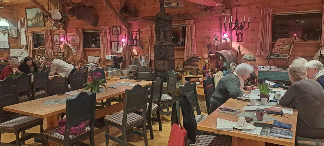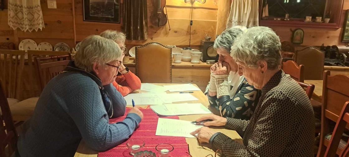 Bygdekvinnene samlast til treff med song og quiz måndag 3.mars i Peraløo