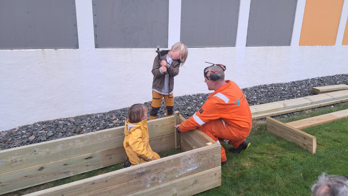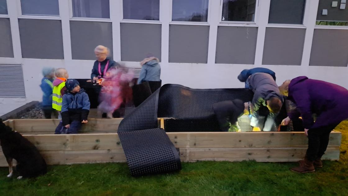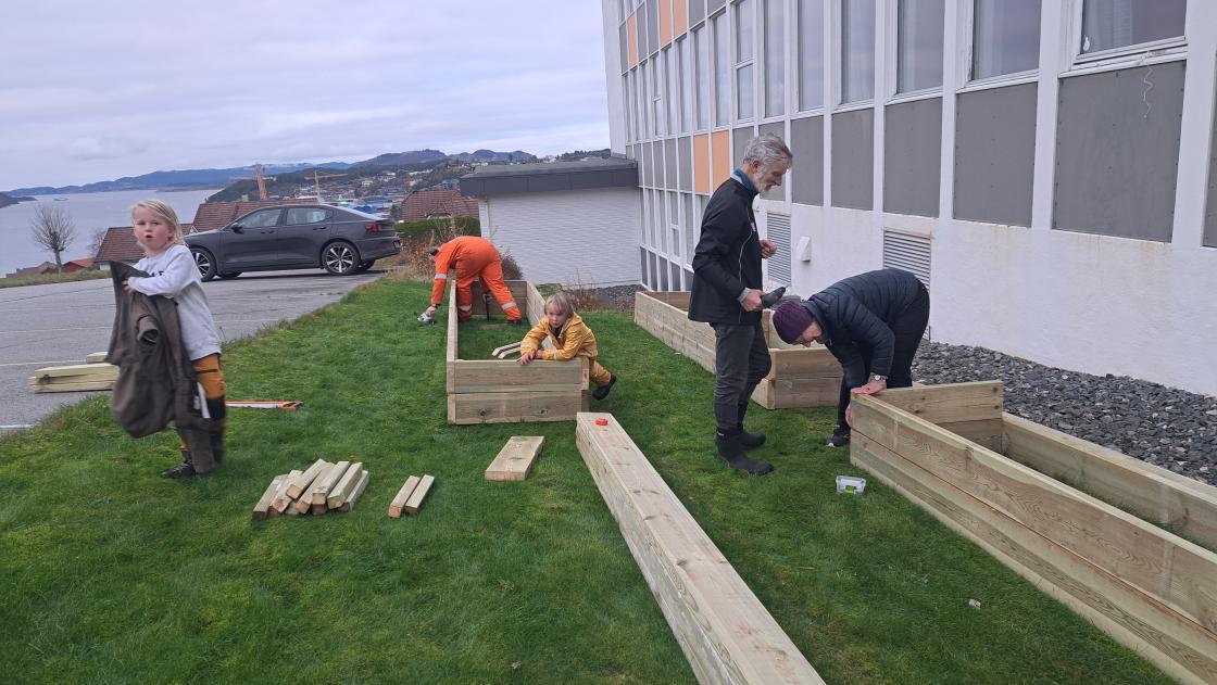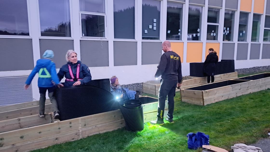Endeleg fekk me organisert DUGNAD for "ProsjektPlantekasse" ved Rimbareid Barne- og ungdomsskule, sparka igang av Fitjar Bygdekvinnelag!