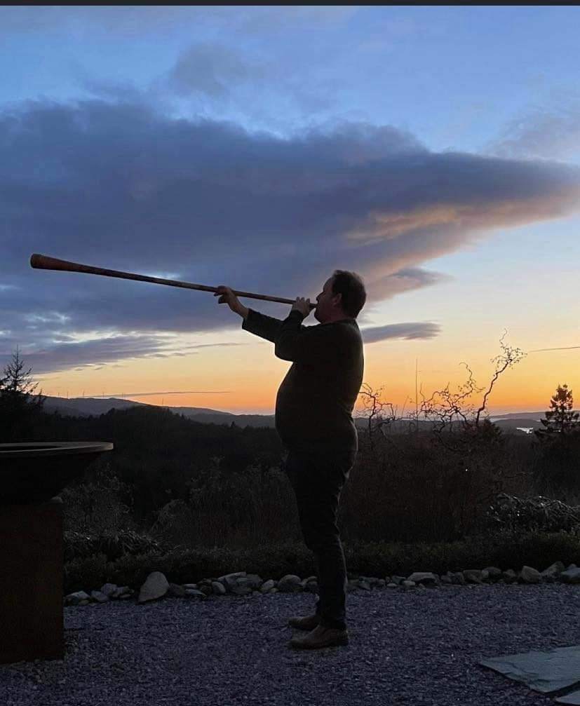 Skjefen sjølv spelar på lur i solnedgangen.