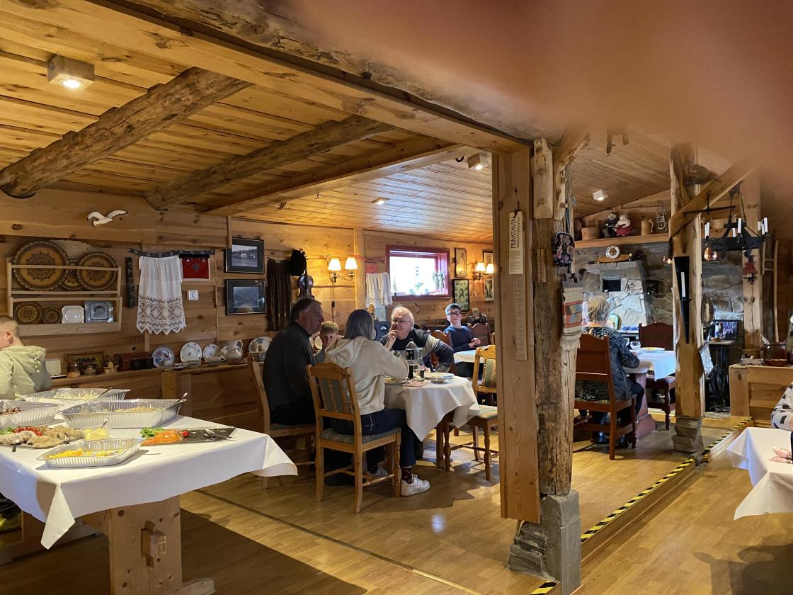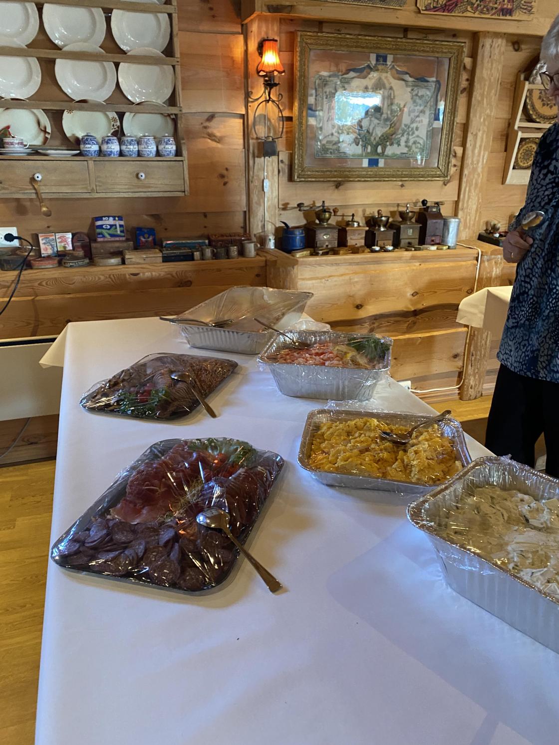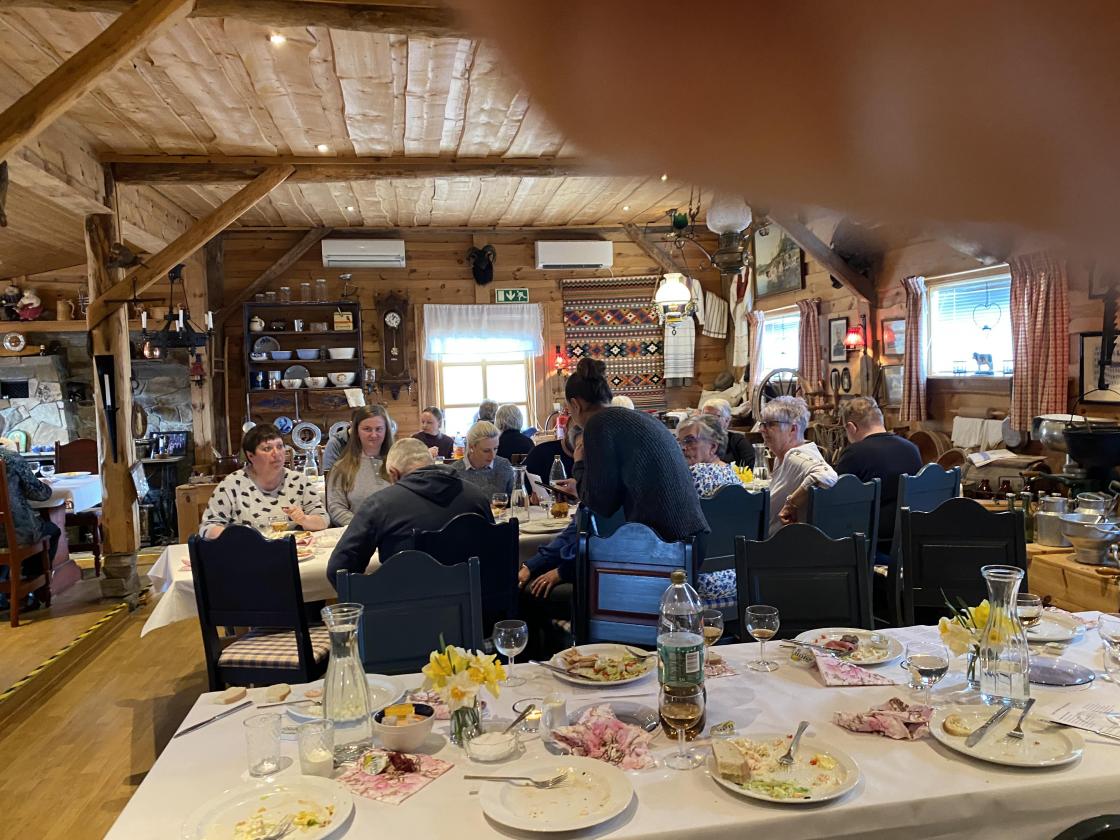 Me serverte koldtbord med mykje nydelig mat, heimelaga kaker til kaffien. Alle koste seg. Per Johan Vestbøstad viste oss fine bilder frå Fitjar. Me hadde musikalske innslag . Nadia sang seg inn i hjertene våre med vakker sang, den eine ho sang var ein gammel sang av Ukrainske gevær menn, dei synger att Ukraina er stengt, men de vil reise det opp og gjenopprette det. Denne sang alle med på, det var så vakkert og sterkt. Ivanna framførte ein klassisk sang på Fiolin. Nora Jæger Thorland sang ein nydelig sang av Erik Bye, " vår beste dag ". Dei fleste snakka bra norsk, så me hadde gode samtaler med dei. Tilslutt hadde me gratis utlodning. mange fine gevinster og alle både store og små vant fleire gonger på sitt lodd .Anne Marie Røed var konferansier og så kjekk å høra på.