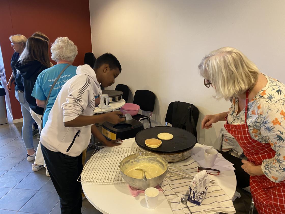 Torsdag 16 juni var Fitjar Bygdekvinnelag invitert på "Ope hus" i Kulturhuset på Fitjar. Der trefte me mange fine ungdommer som var svært ivrige til å lage lappekake røre og til å steikje lappekaker. Dette likte dei godt, og dei var veldig flinke.Me var seks medlemmer frå Bygdekvinnelaget som stilte opp.