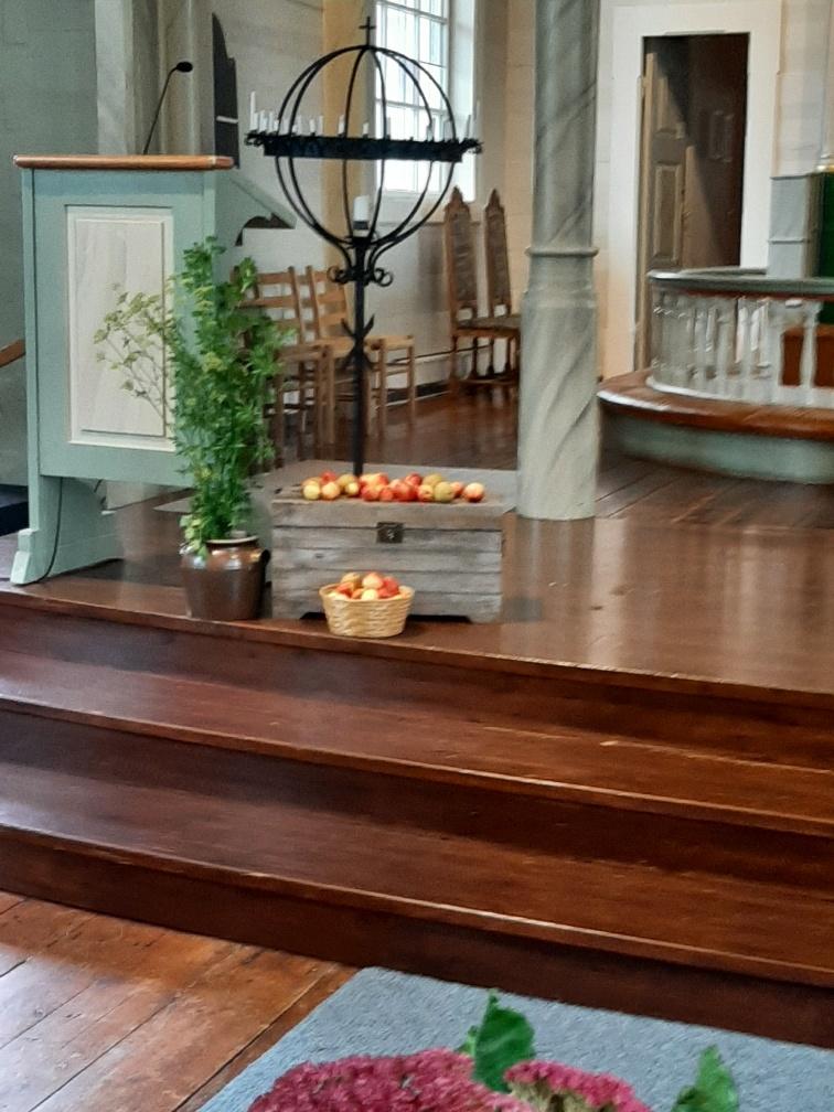 Søndag 24 okt. 2021 var det Høsttakkefest , og kyrkja vart pynta i år som det har vert i mange år no, av Fitjar Bygdekvinnelag.