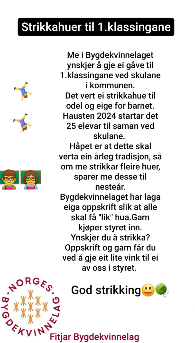 Forside Protokoller Invitasjon til den strikkeglade Strikke huer til1 klassingane Previous Next Invitasjon til den strikkeglade Fitjar Superbruker · 18. april, 2024 Like 342 Del på: