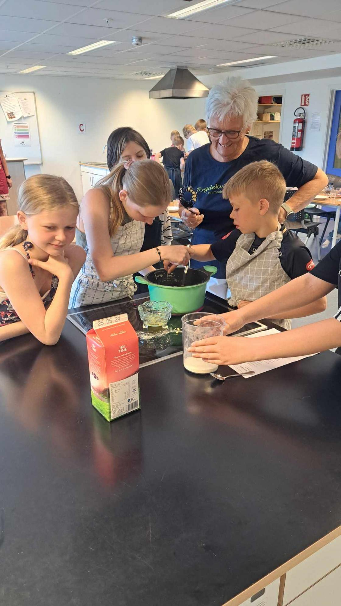 Det kjekkaste var å ausa vekk feittet då det slapp, og alle tre gruppene fekk godkjend mengd feitt ut av grauten.