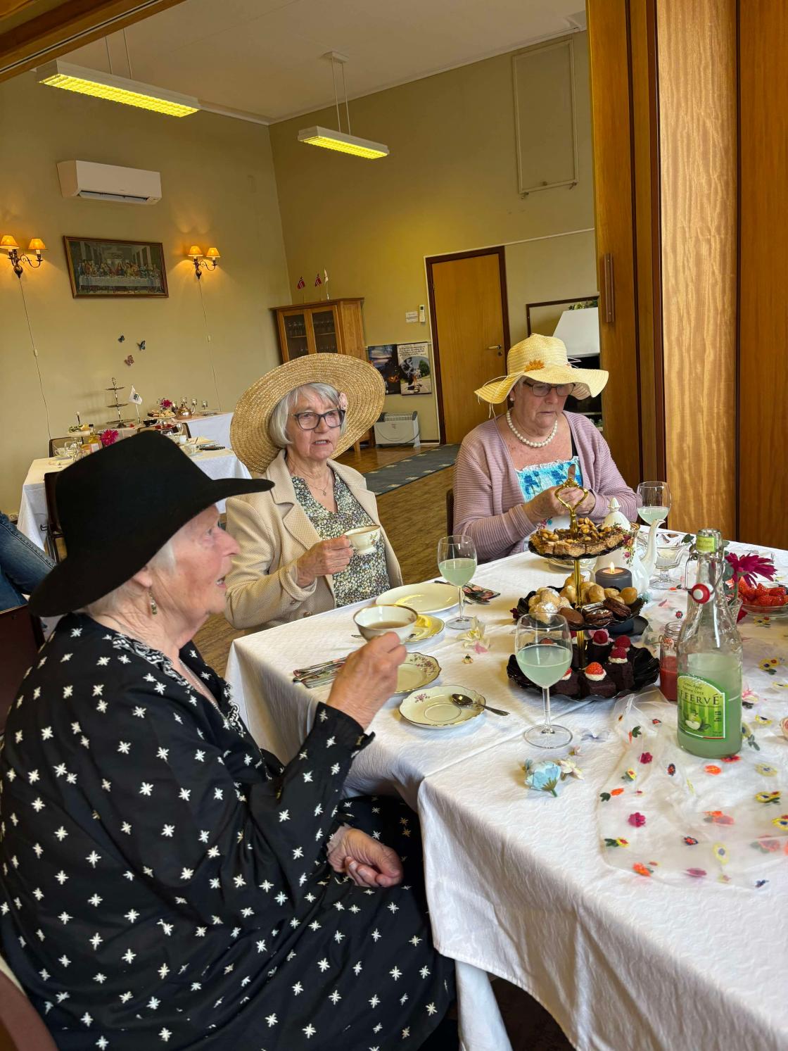 En fin liten gruppe (24 i tallet) pyntede damer møtte opp på Afternoon tea i går ettermiddag.