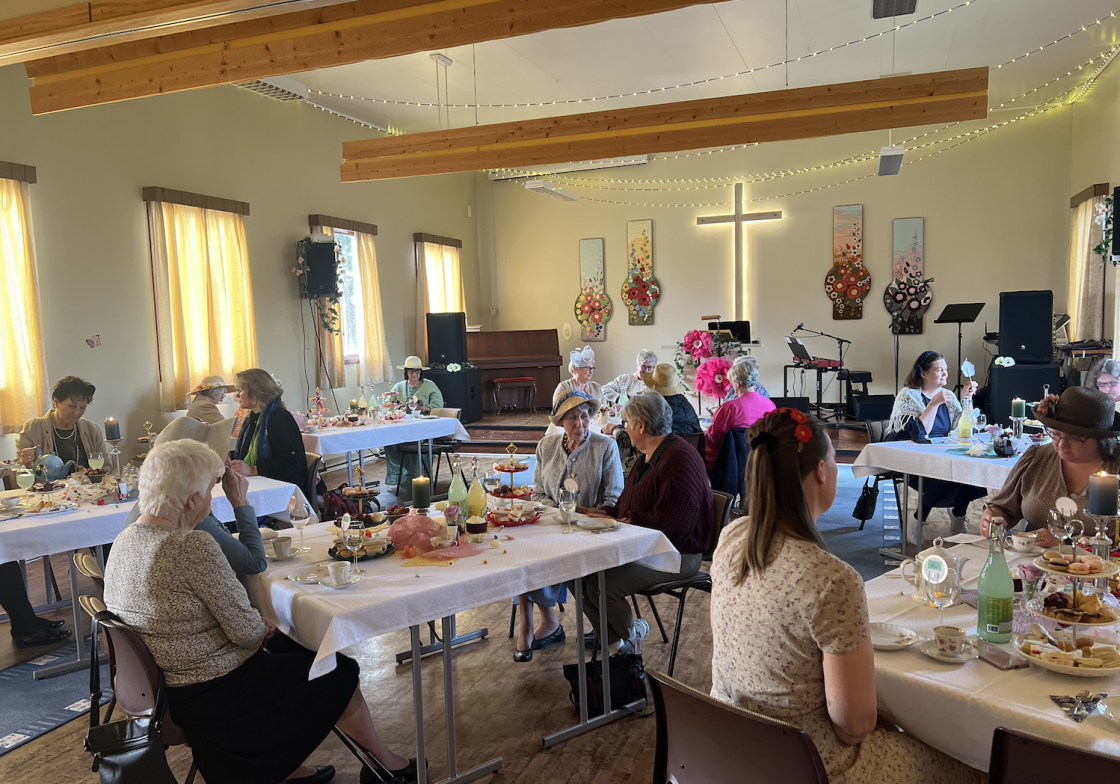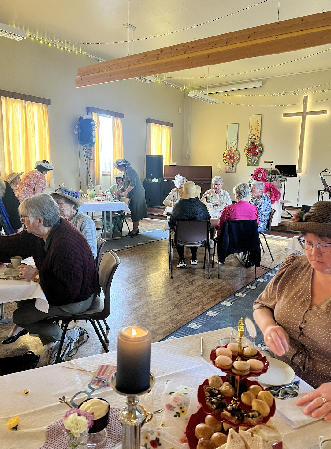 25 fesftine damer tok turen til Frostadheia bedehus da Frostadheia bygdekvinnelag arrangerte Afternoon Tea fredag 17. april 2026. De hadde hatter, små vesker, finsko, lekre kjoler, kreativ hodepynt, nåler og brosjer. Dette var i virkelig god Afternoon Tea ånd.