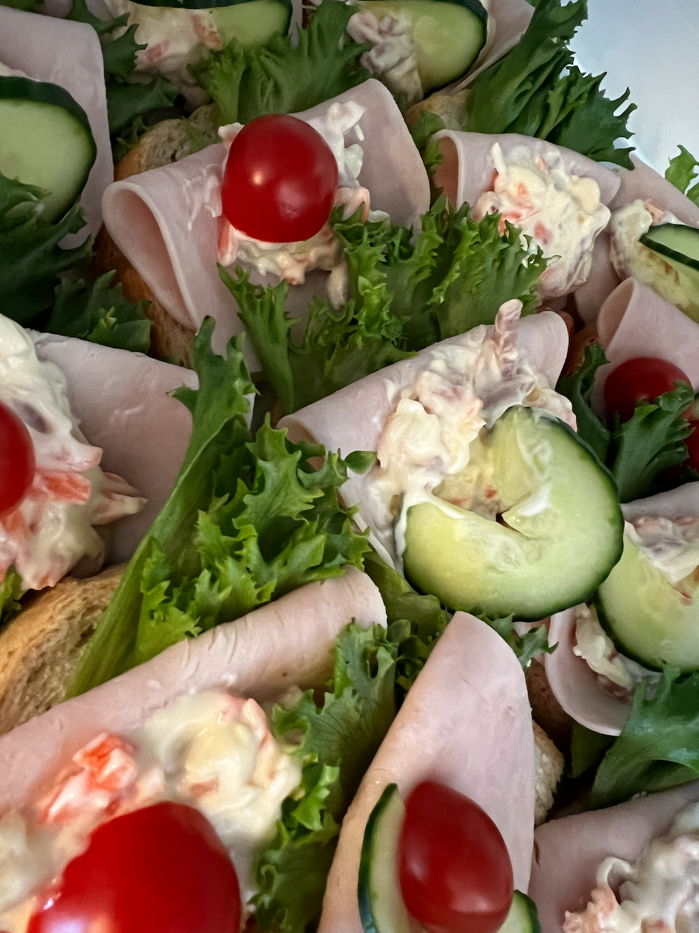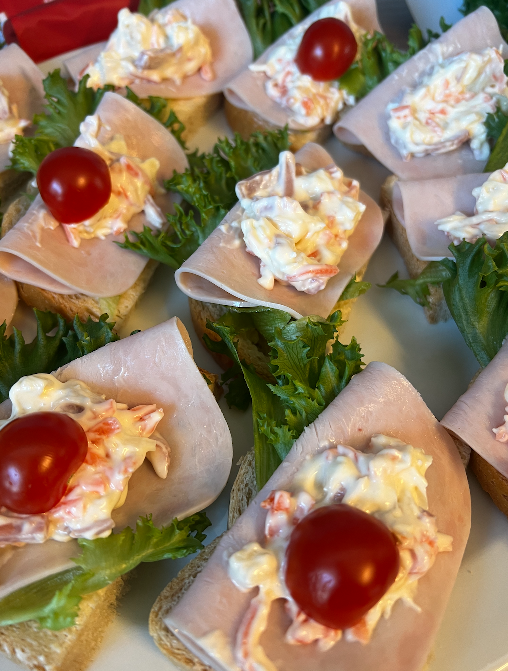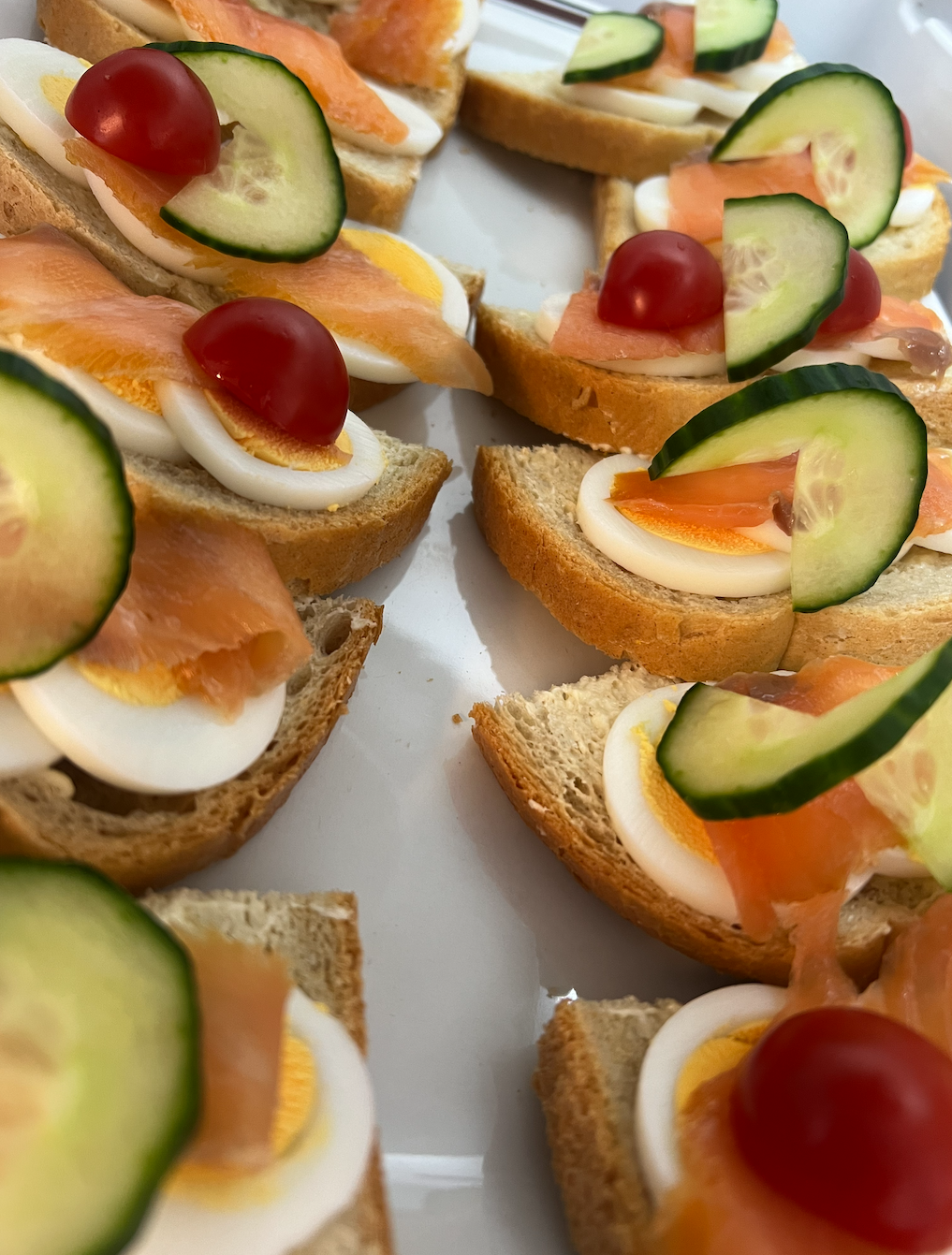 I går serverte vi påsmurte snitter, kake og kaffe.