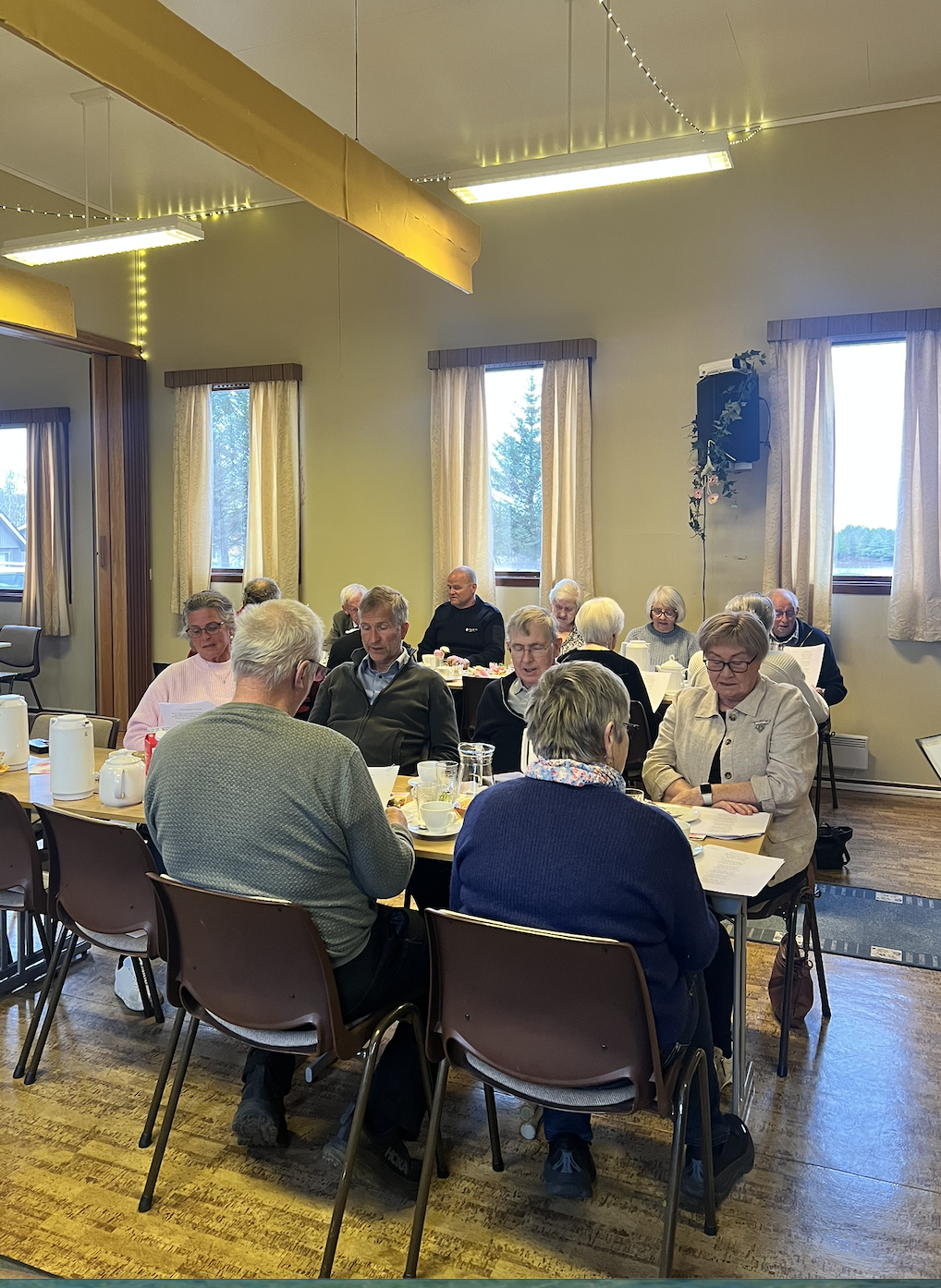 Vi serverte kveldsmat, sang, allsang, quiz og trivelig prat.