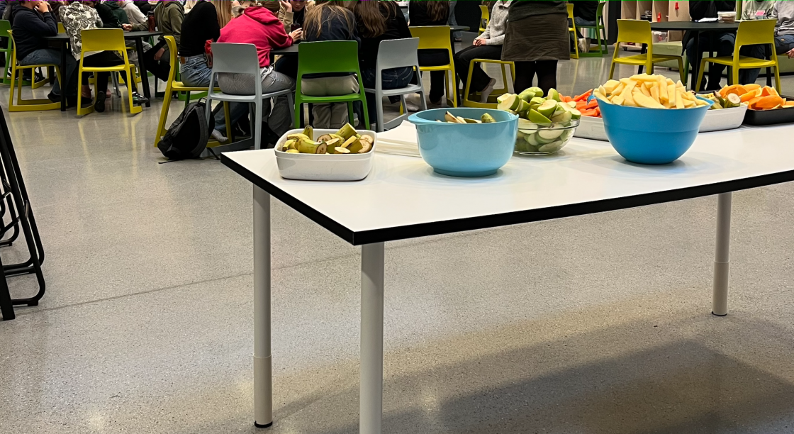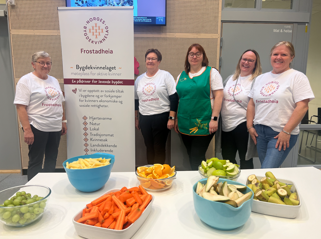 Frostadheia Bygdekvinnelag markerte dagen ved å dele ut frukt og grønnsaker til elever og voksne ved Smøla barne og ungdomsskole.