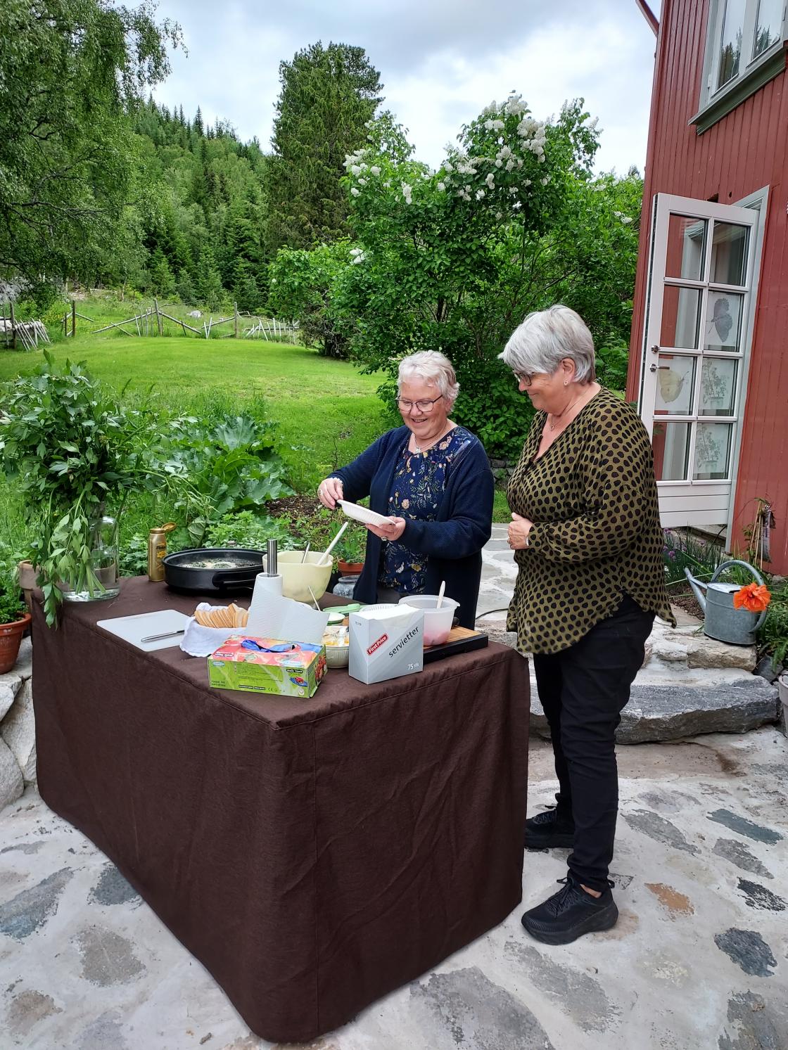 Kari serverte nydlege urteburgerar og Siv hadde laga neslesuppe, vi fekk og smake på mange ulike planter og urtar.