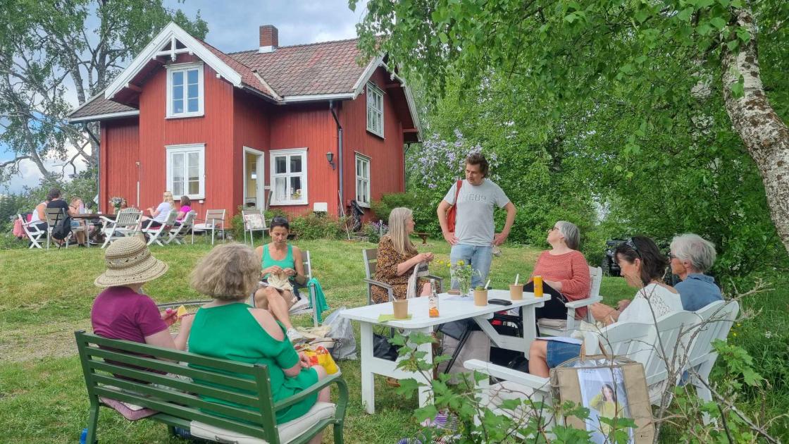 Det var en flott, varm dag i sola, og da det kom noen få regndråper, var det fint å kunne trekke inn under tak i stua eller på låven.