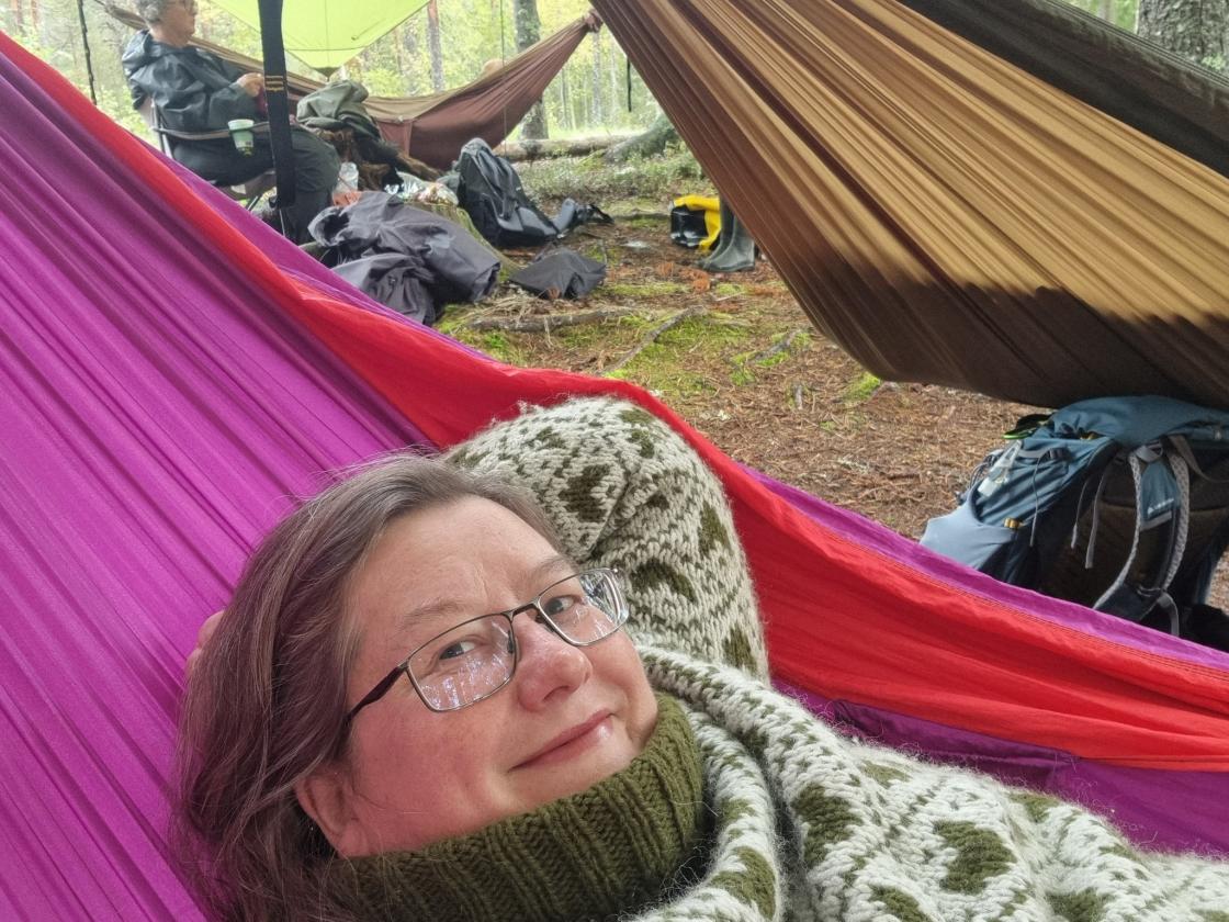 En fin søndag i september, møttes vi til å strikke, hengende i hengekøyer!