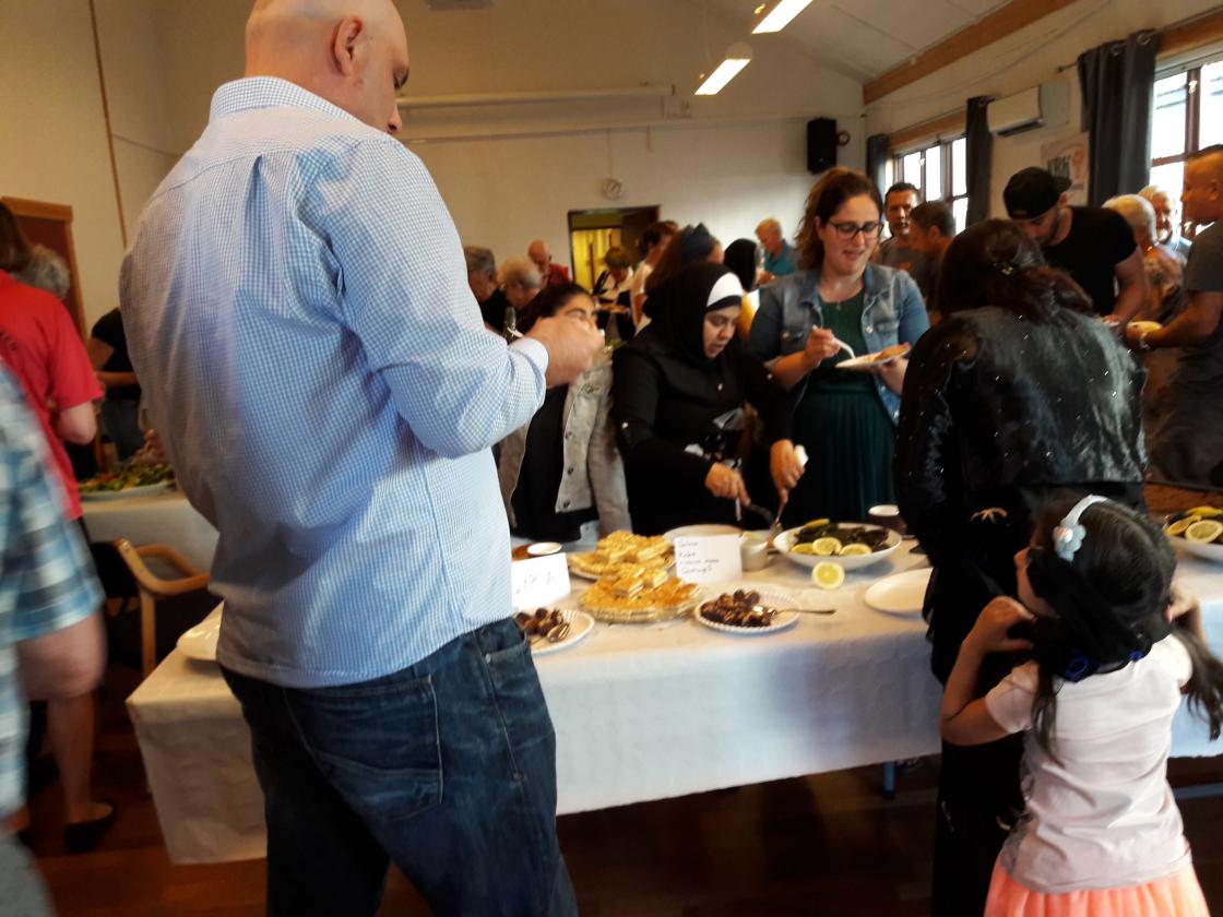 Det var mange frammøtte i alle aldre fra mange forskjellige land. Varaordfører Leif Haugland holdt åpningstalen, som ble etterfulgt av operasang som vakte stor begeistring i lokalet. I Solheimstua var det dekket bord med mat fra mange land. Bygdekvinnelaget serverte rømmegrøt og rabarbrasuppe, noe som mange norske besøkende gjerne ville smake på. De fleste fra andre land som passerte bordet var litt skeptiske til de norske smaksprøvene. Det var jo så mange fristelser på bordene! Folk hygget seg med mat de hadde lyst på.