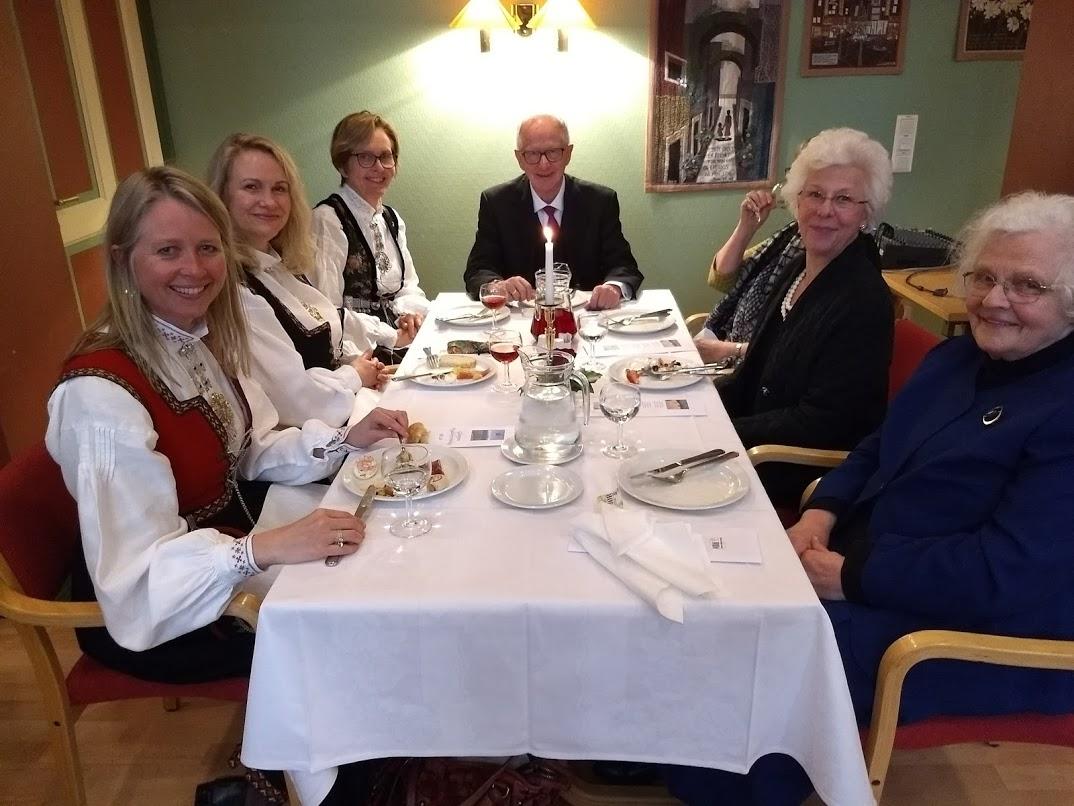 Bordsete med festtalar Hildegunn Gjengedal (t.v) held ei svært interessant tale om kvinner i landbruket over heile verda.
