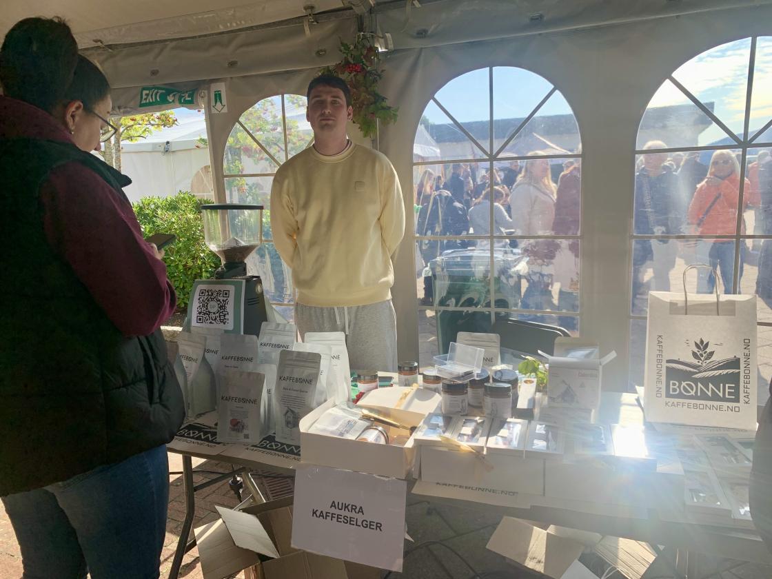 Det vart fort folksamt inne i telta og køer utanfor telta av folk som fylte handleposane sine med alskens godsaker - akkurat slik vi ønsker oss at ein handledag på torget skal vere.