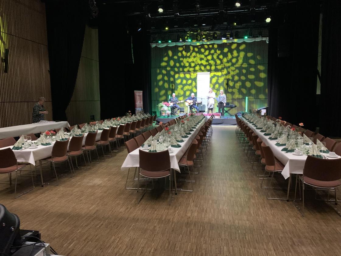 Kvelden starta med ein fantastisk konsert med med Vaffeltausene etterfulgt av ein nydeleg middag med sosakjøt og riskrem laga av Hilde Havnen Skarshaug på Sjøpølsa - servert oss av dyktige karar frå Gossen mannskor. Grethe Uran frå Møre og Romsdal Bygdekvinnelag heldt takketale for maten🌸💕