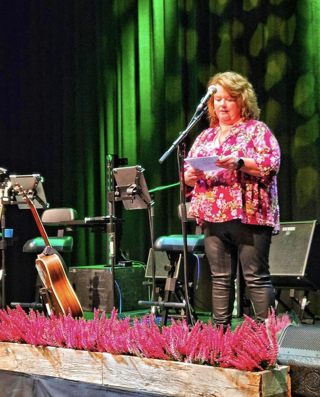 Liv Borghild Hildre frå Møre og Romsdal Bygdekvinnelag og Monica Frisvold Vågan frå Norges Bygdekvinnelag gratulerte Gossen Bygdekvinnelag som Årets lokallag 2024