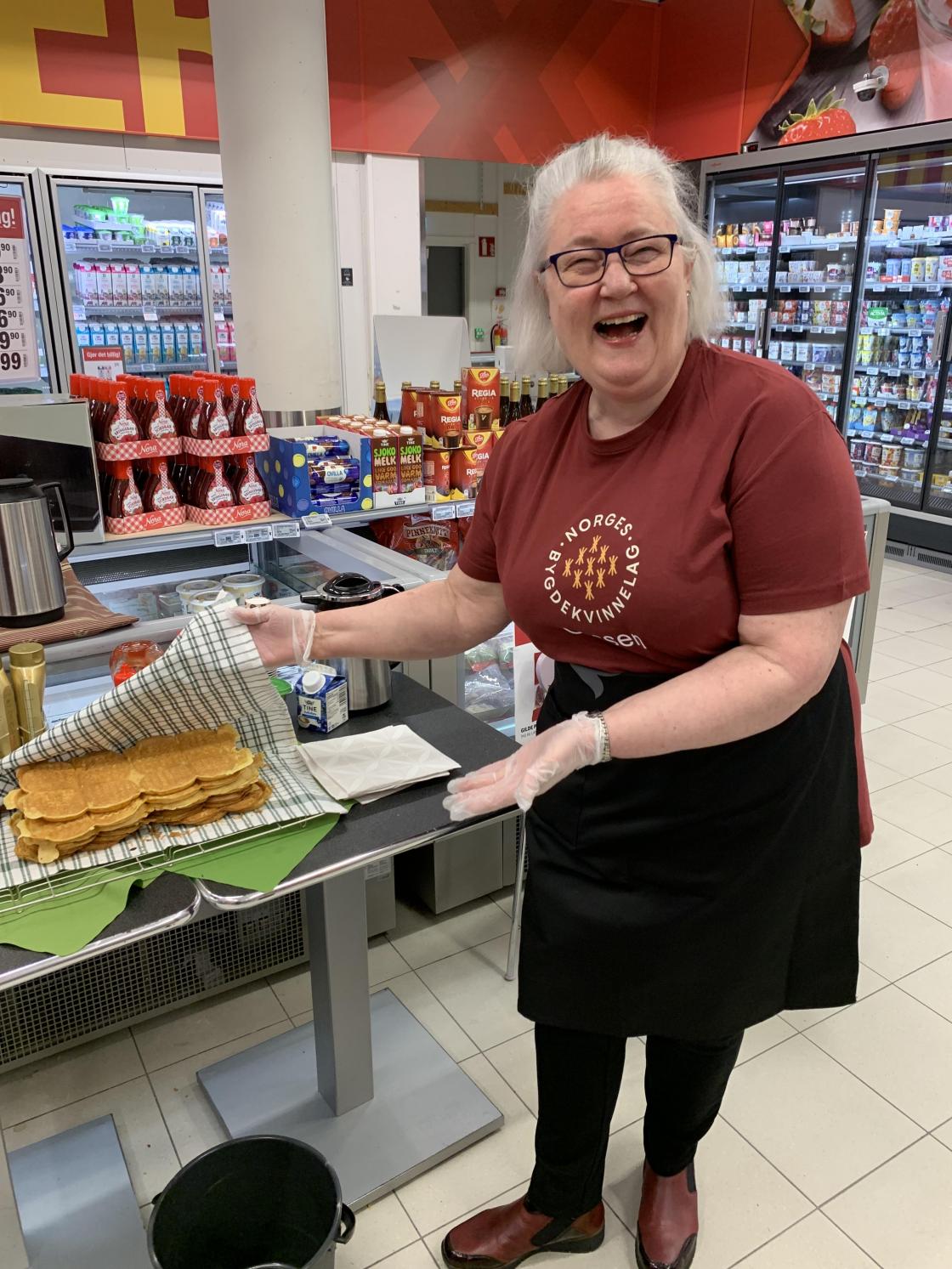 "Dette er kjekt", sa damene sjølve. Dei trivdest med å slå av ein prat med alle dei som kom innom vaffelstasjonen![]()