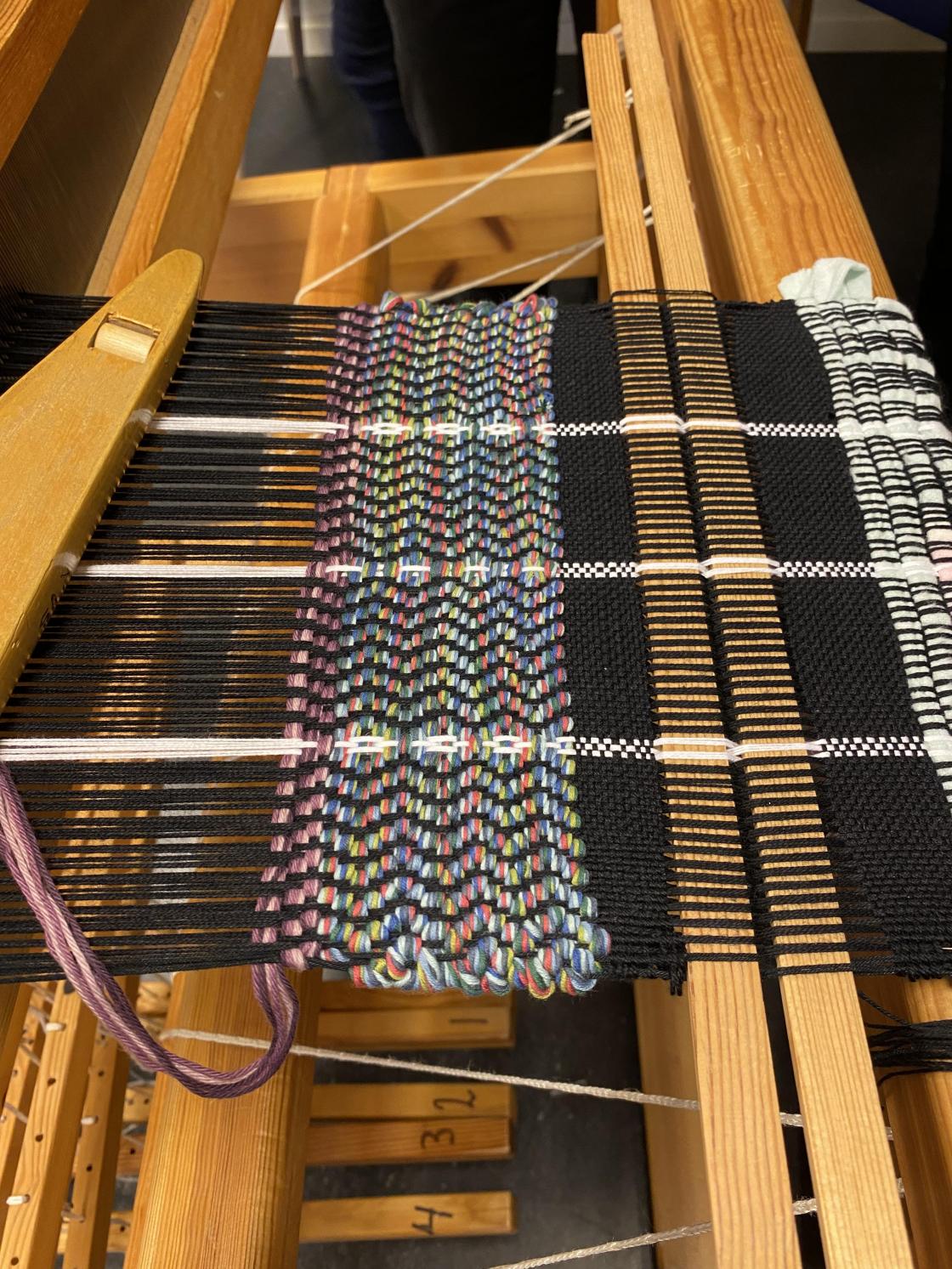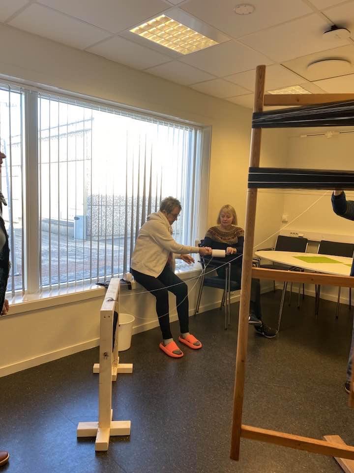 Kursdagen starta med litt teori, før deltakarane gjekk over til å lage ei renning på ein renningsbom. Renninga var med 3 trådar og to fargar. Etterpå vart renninga overført til veven.