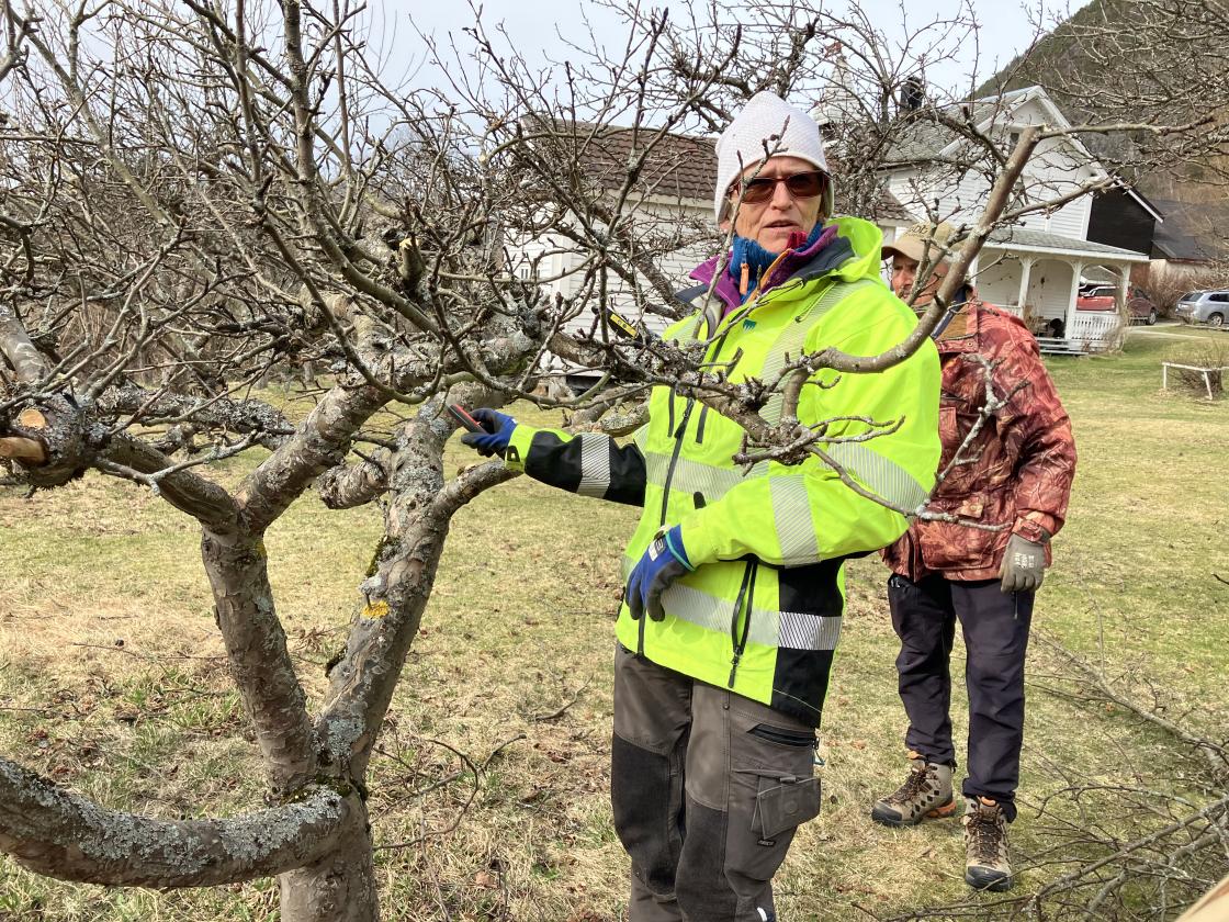 Hagen på Høljenes var ein skikkeleg tumleplass for gjengen som fekk prøvd/demonstrert diverse utstyr. No blir det oppfrisking av frukt- og bærhagane rundt om i Rauma!