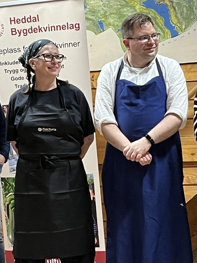 Etter omvisningen var det duket for årsmøtemiddag og kulturkveld, og kjøkkengjengen i Heddal serverte en utmerket tradisjonsrett fra Heddal: Salt kjøtt med kål, rotgrønnsaker og poteter. Kakebordet stod klart straks etter, og så ble det revykveld i regi av Ruben Kvålseth og Tor Olav Aase Kåsa.