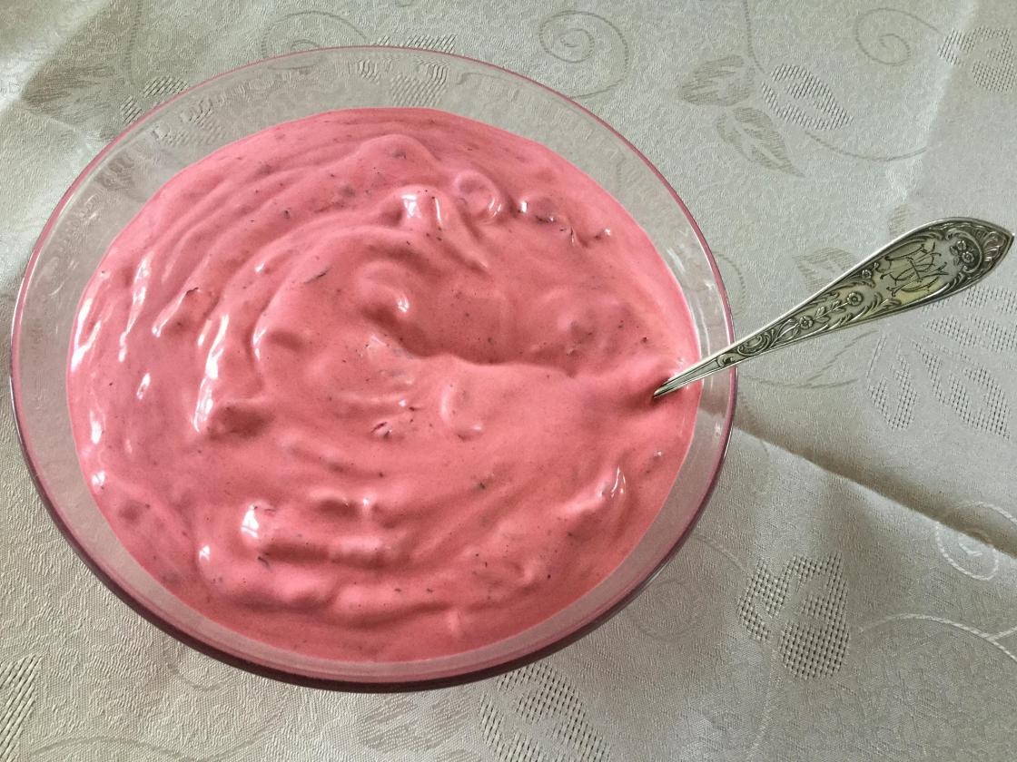 Vaniljesausen: 5 dl. mjølk, 5 dl føte, 160 g farin, 1 vaniljestang kokast opp. 10 eggeplommer rørast saman og visp fløtemjølka inn under kraftig omrøring. Sausen skal ikkje overstige meir enn 85 grader. Når sausen har tykna, silast den i ein gong og kjølast av.