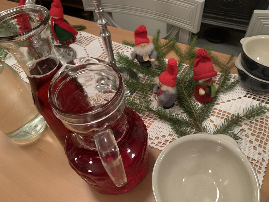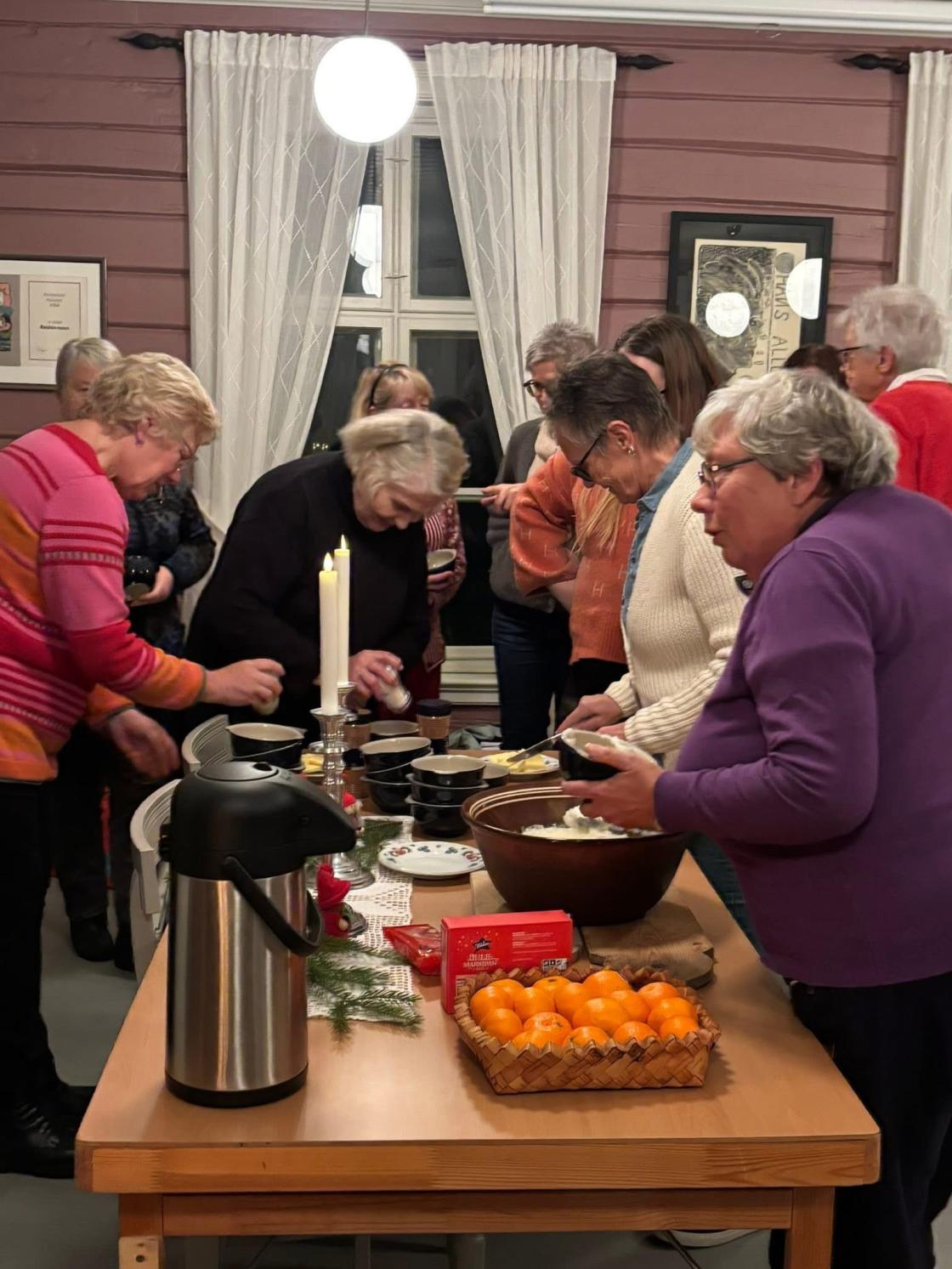 Julegrøt med to mandler, sluttplanlegging av vår deltagelse på O jul med din glede på Reidvin-tunet søndag 6. des. 12-15, mye latter, utlodning mm. 😂🌟