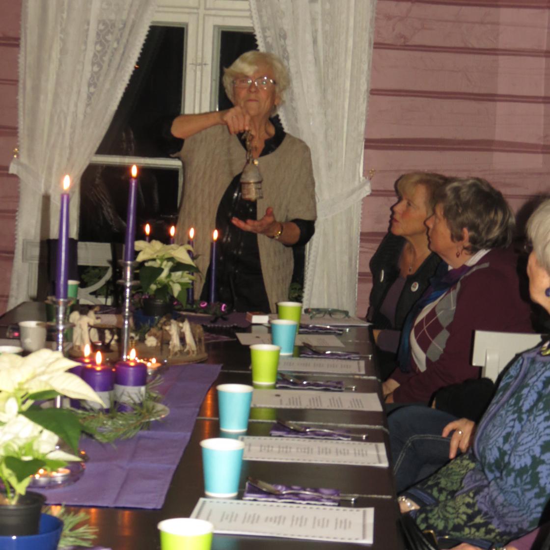 Randi Sveberg sto for julefortellingen og selvfølgelig ble årer solgt og fine gevinster fant heldige vinnere. Og risgrøten var selvskreven på menyen en slik kveld.