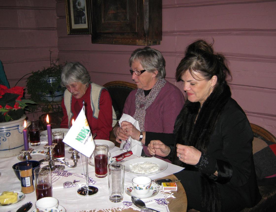 Hanne Inderberg Smith og Ingeborg Gundersen med risgrøtpletten