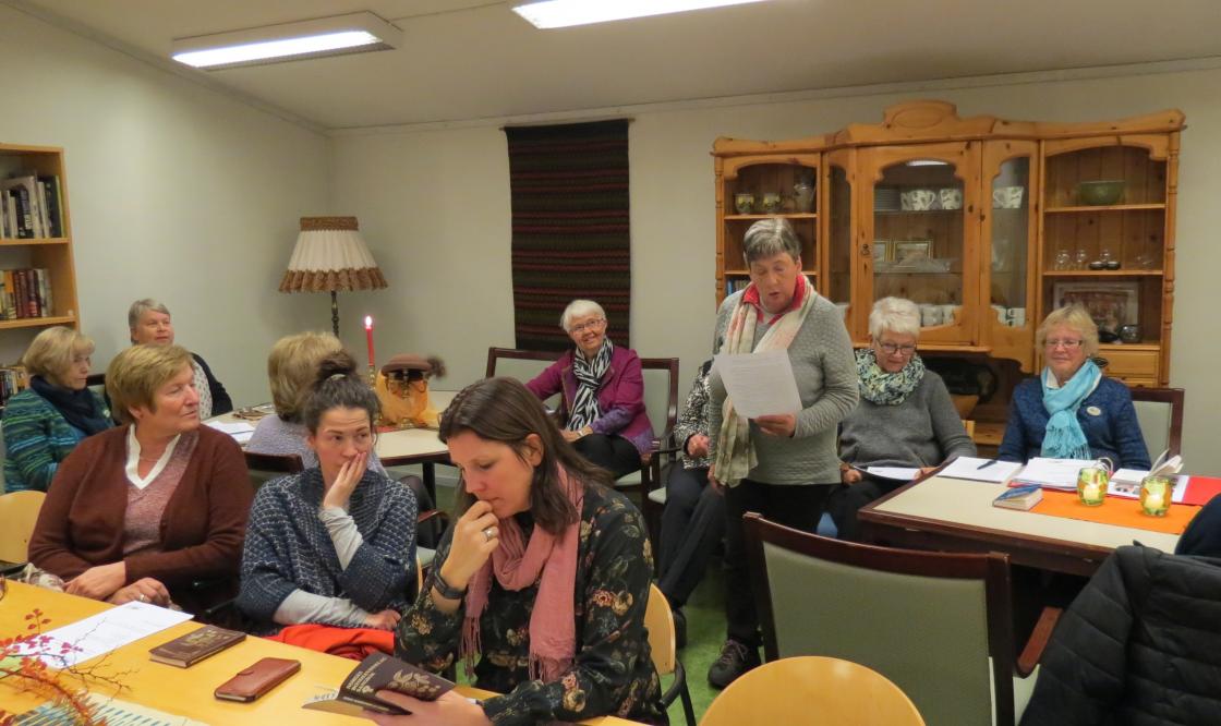 Anne Berit Finden tok gjenvalg som leder, så da var en viktig posisjon i styret sikret. Åse Kristine Guthus tok også gjenvalg, så dette så lyst ut. Og da ingen av de gjenværende kandidatene satte seg imot å bli valgt inn, har vi også til neste år et flott, oppegående styre i laget. Da den skriftlige delen av valget var ferdig blei resten som hadde påtatt seg verv for ett eller to år framover, klappet inn, en etter en. Lene Kristin Bråtejordet fikk platte etter mange år i styret, Randi Traet fikk blomster og takk for tia som vara til styret.