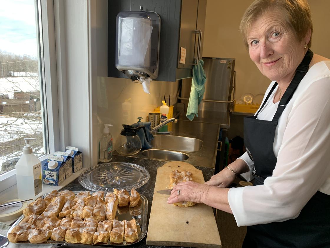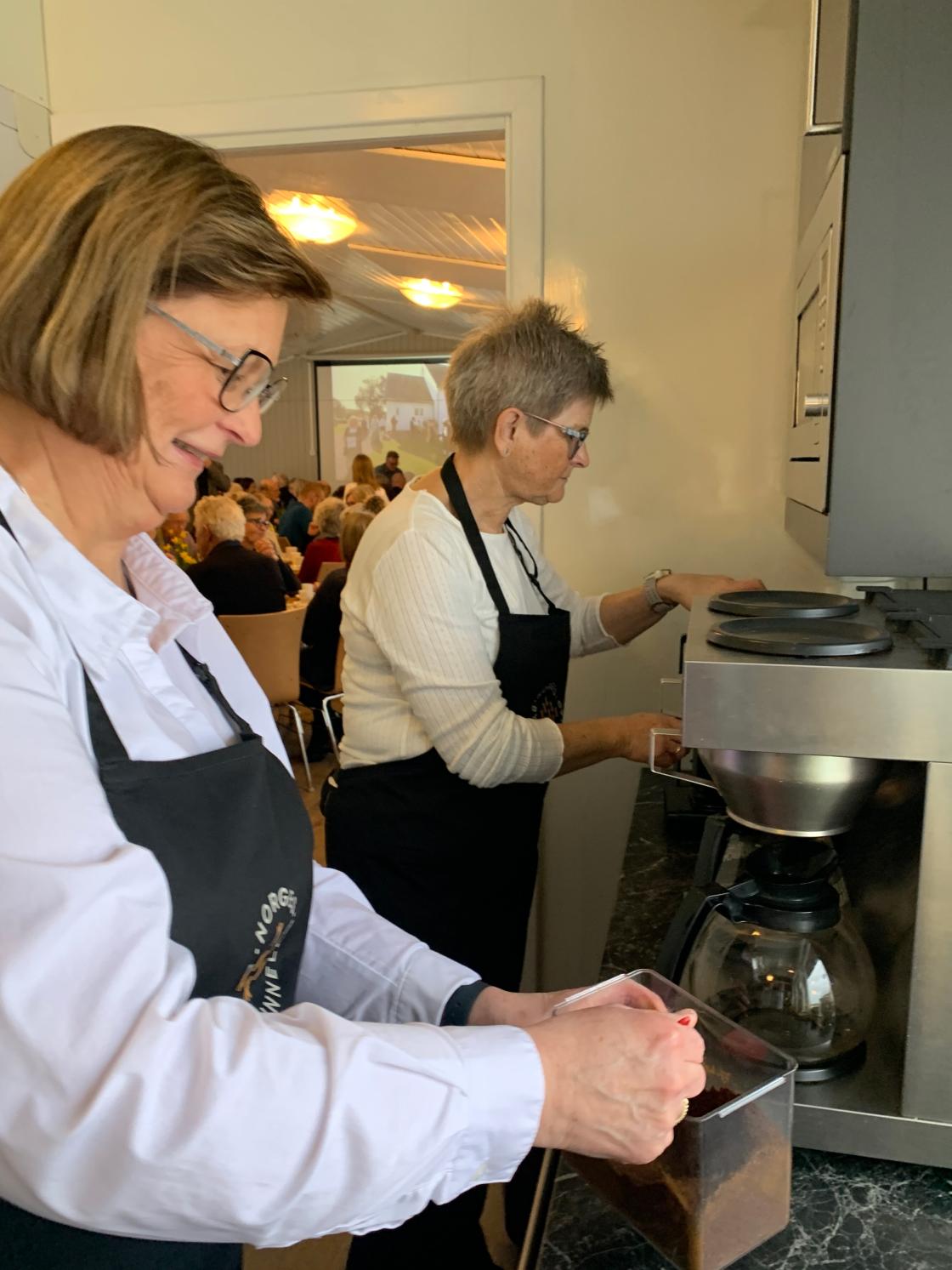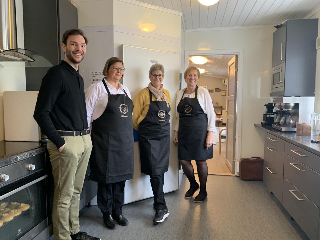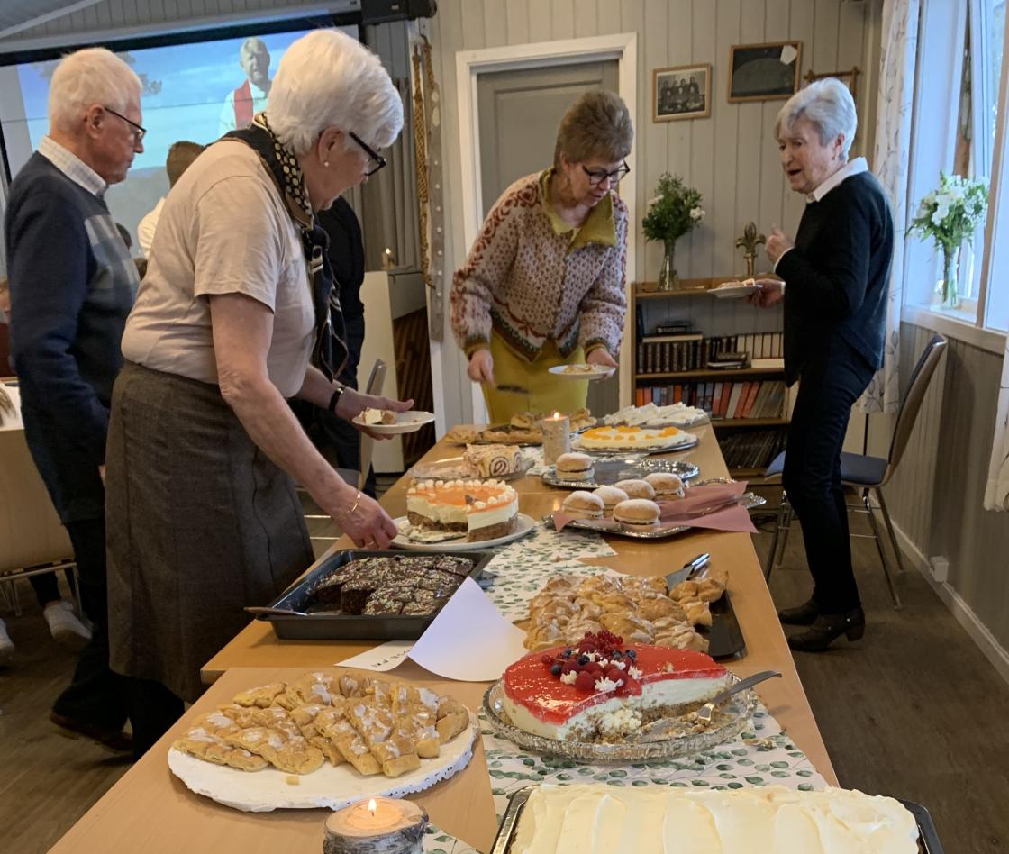 Bygdekvinnene fra Hillestad sørget for brorparten av kakene på kakebordet og var både serveringshjelp og kjøkkenhjelp sammen med MR under avskjedsfesten for sogneprest Beint på Speiderhuset.