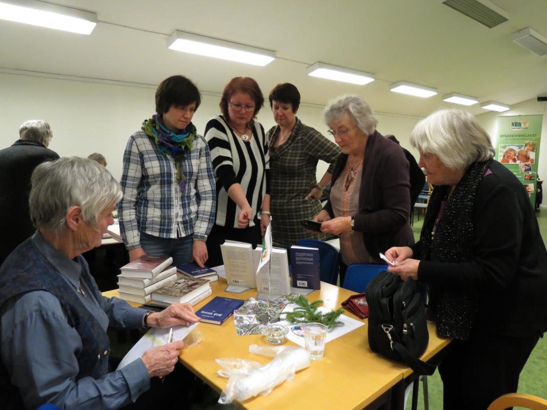 Lillian Skov fortalte om sitt forfatterskap og leste litt fra noen av sine bøker. Det var en jevn strøm av kjøpelystne og bokhaugen minket radikalt i løået av kvelden. En godt fornøyd forfatter kunne si takk, og det kunne også vi - godt fornøyd med en kveld i bøkenes verden