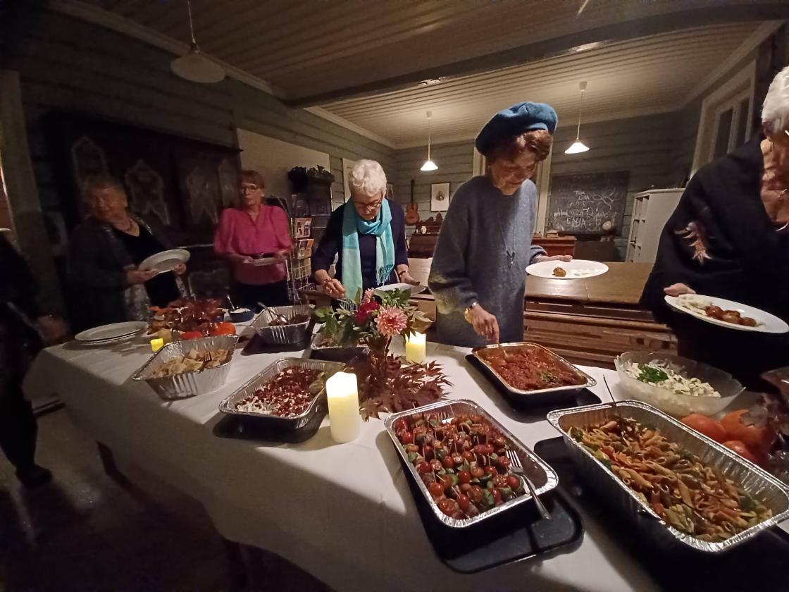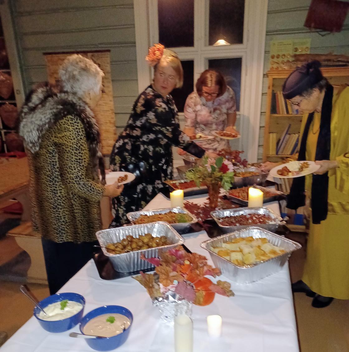 Vi samlet oss, 16 pyntede bygdekvinner til festlig aften, som takk for innsatsen på Høstmarkedet.
