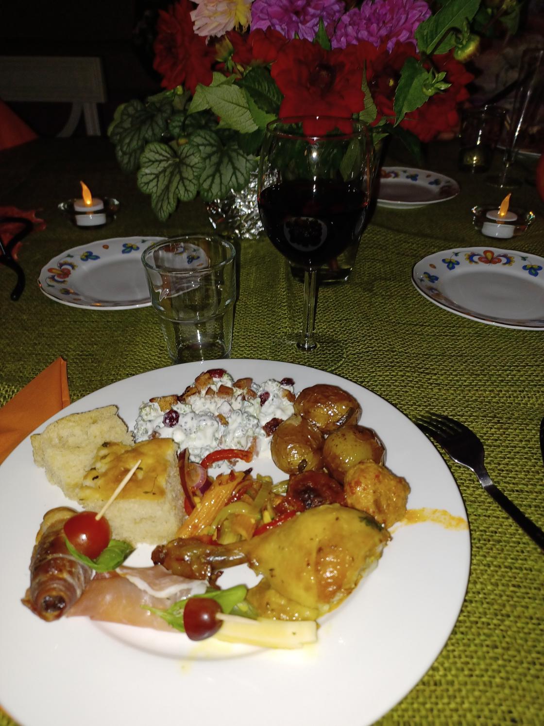 På Tapasbordet var det mye godsaker, vi forsynte oss godt og med godt drikke til. Innimellom sang Sigrid Lian og spilte gitar. Hun fikk velfortjent medalje for det. Medaljer fikk også Randi Traet for kveldens stiligste, og Lene Bråtejorde for kreativ hodepynt.