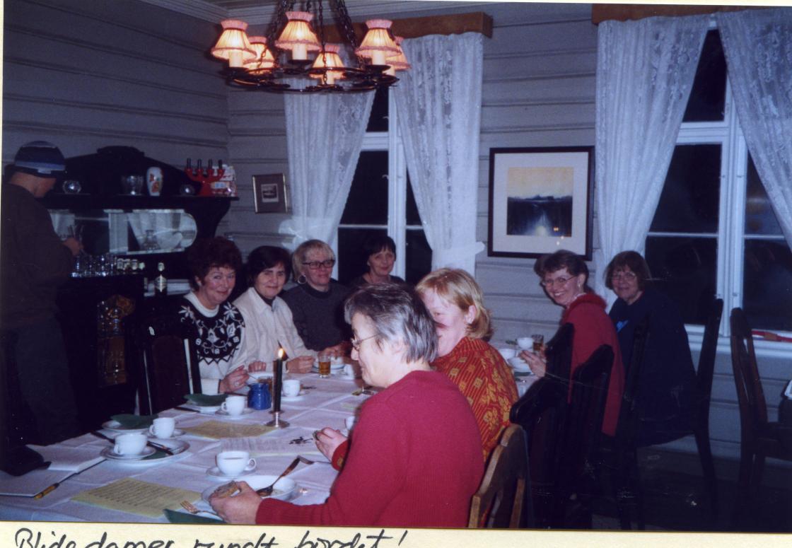 Foreningen Norden var invitert og sønnen i huset, Lars Christian, sto for serveringen. Ikke rart det var blide damer rundt bordet!