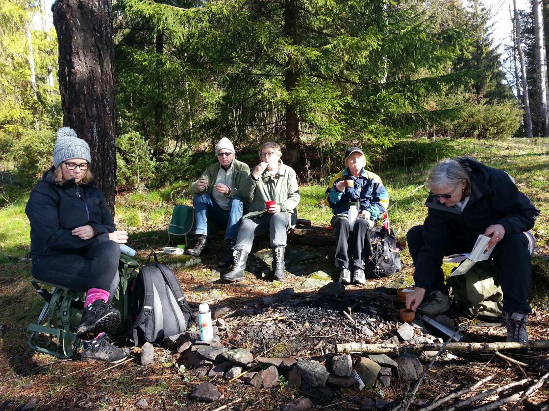 Flott tur i dag. Flinke folk fra fuglekikkeforeningen lærte oss litt av hvert om hvilke fugler vi hørte og så, hvordan kjenne dem igjen og mere til. De noterte seg opp mot 40 arter i løpet av turen. Med gode kikkerter fikk vi se mye av både stort og smått, i skogen og ved vannet. Ved Brekkeodden koste vi oss med en matbit og kaffe, sang litt, kikket og lyttet.. Sol for det meste og et blikkstille vann, med fugler som til vanns og i lufta ga oss mange flotte opplevelser.Turlederen fikk et krus med fugl på som takk.