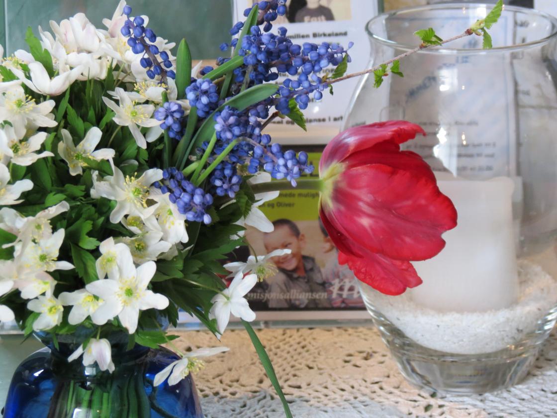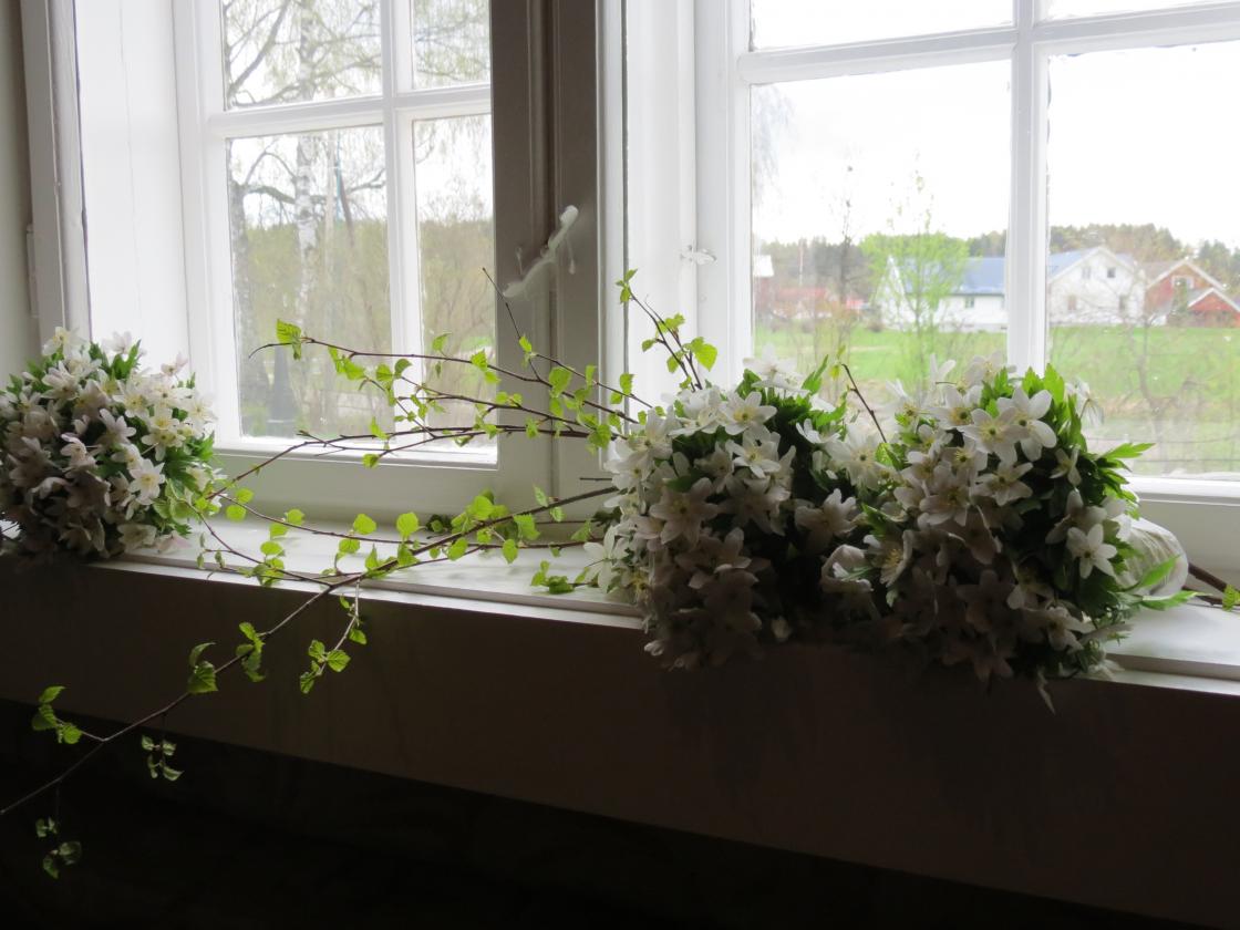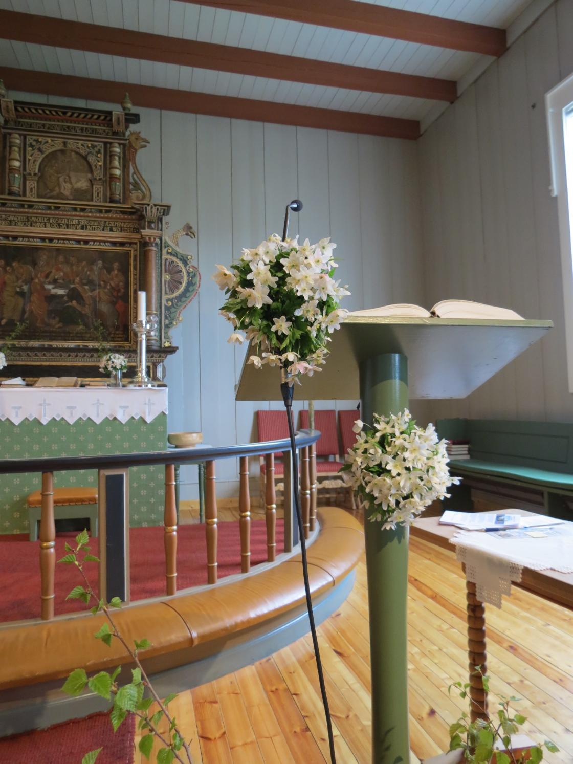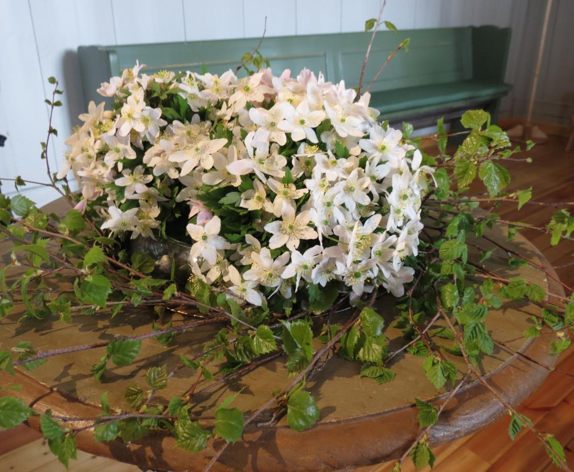 Åse Kristine og Marianne hadde plukket favnen full av hvitveis som de raust fylte kirkerommet med, og bukettene ble tatt med videre til Bygdehuset Fjellhall der festen skulle være. Festgudstjeneste og Promenadeorkester, flaggborg, tale for dagen, is og brus og leker for barna - ja det var på plass, alt sammen.