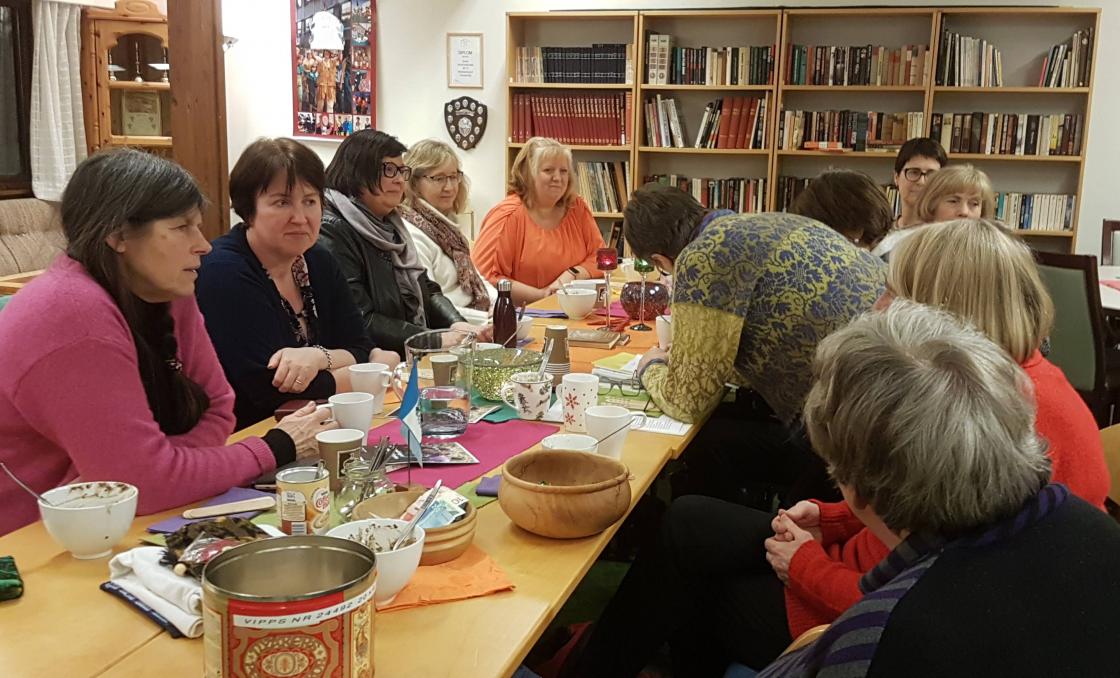 Besøk fra Hof bygdekvinnelag og et nytt medlem denne kvelden, svartbønnesuppe og lokalavisa på plass - da må vi være fornøyd!