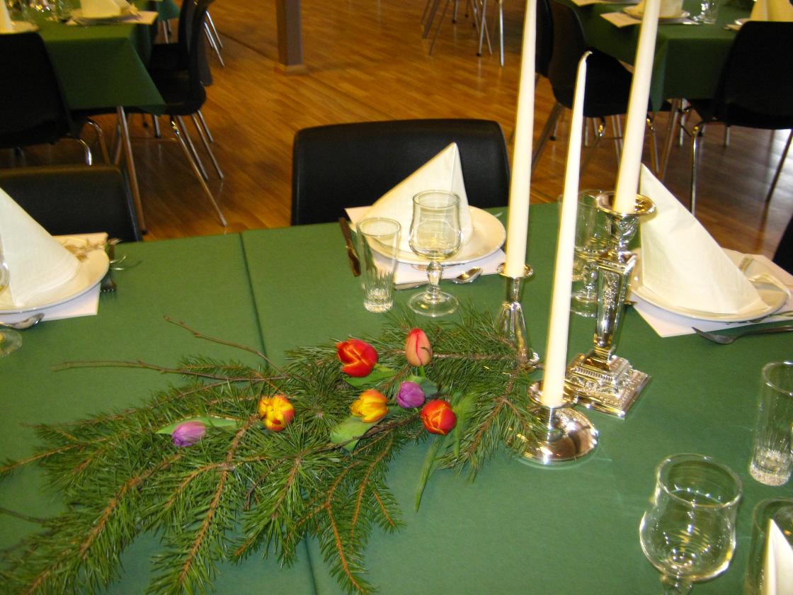 75-årsjubileum med festkledde kvinner i bygdas storstue. Pyntet med grønt fra skogen, sølv fra de mange hjem og tulipaner. Vi hadde innbudt gjester og skulle feire oss sjøl.