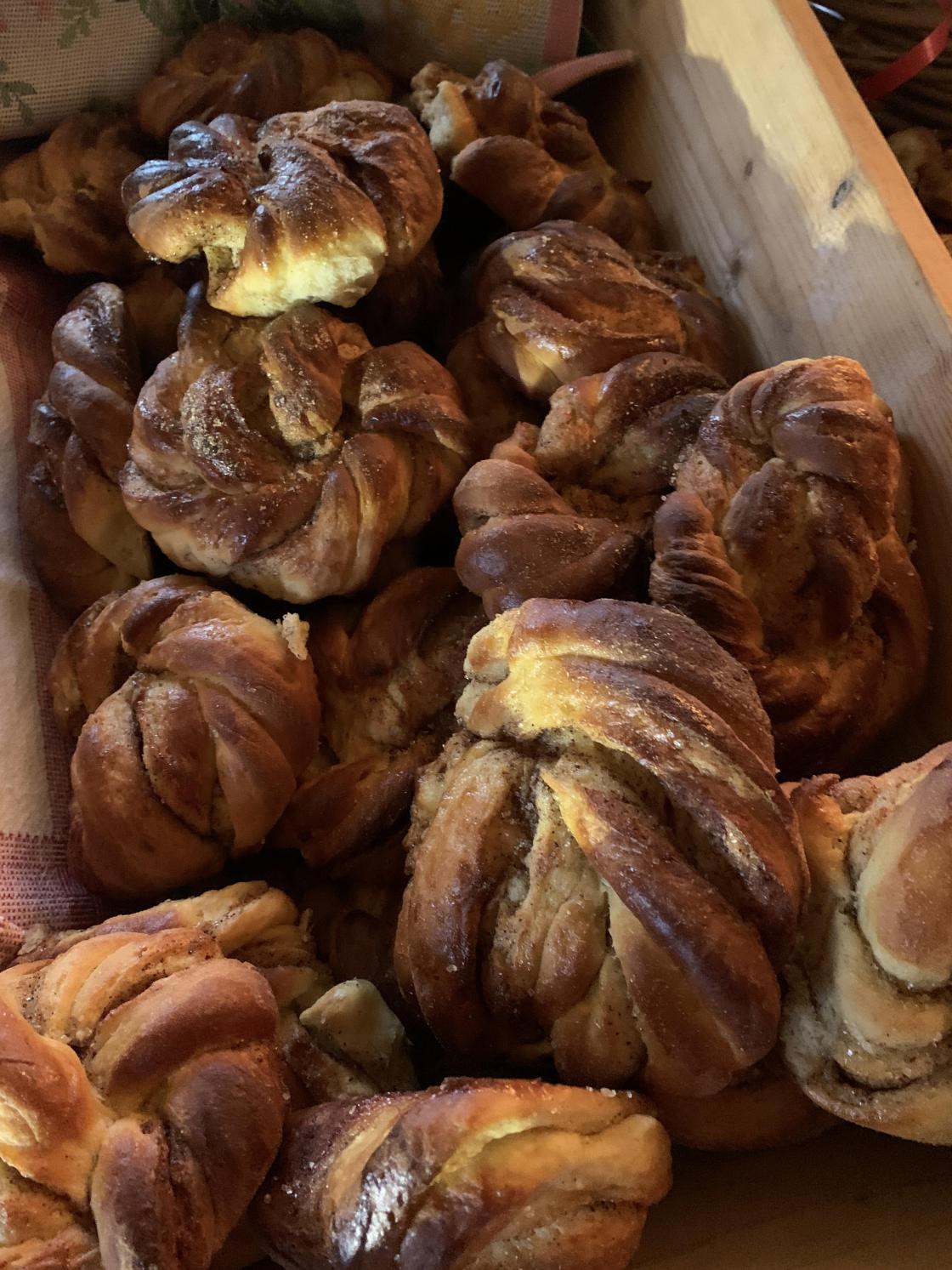 Hillestad bygdekvinnelag mottar de besøkende med deilige, nystekte boller og krydderkake, kaffe og varm saft.