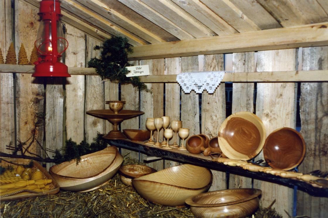 Sentrumsnissen i Holmestrand hadde invitert bygdekvinnelaget blant mange andre til å lage stemning i byen under fjellet før jul. Og vi betemte oss for å si ja. Fikk laget en honkledd "stall" som vi kunne ha varene i og kledde oss godt. Gampen tok vi også med - og langluer og hjemmestrikka kofter var en selvfølge.