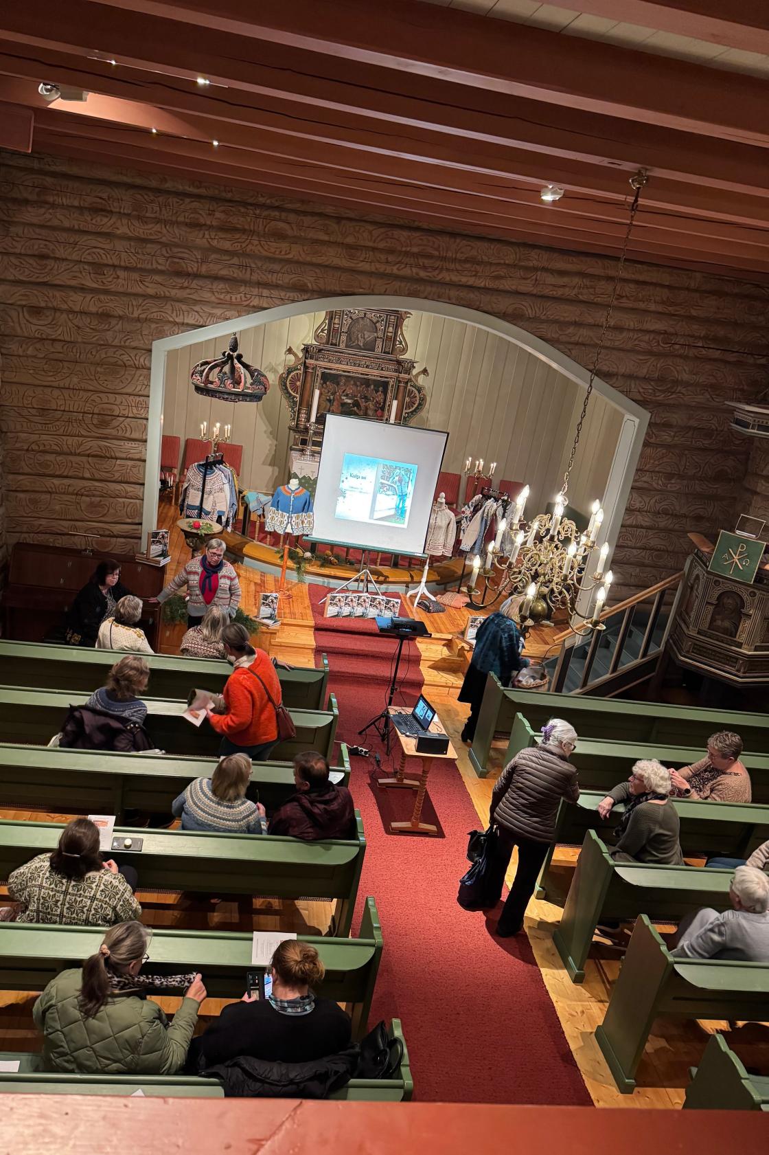 - Hillestad kirkekofte så dagens lys tirsdag 12.11.24 i Hillestad kirke - mens det ble strikket og humret og summet i benkeradene.