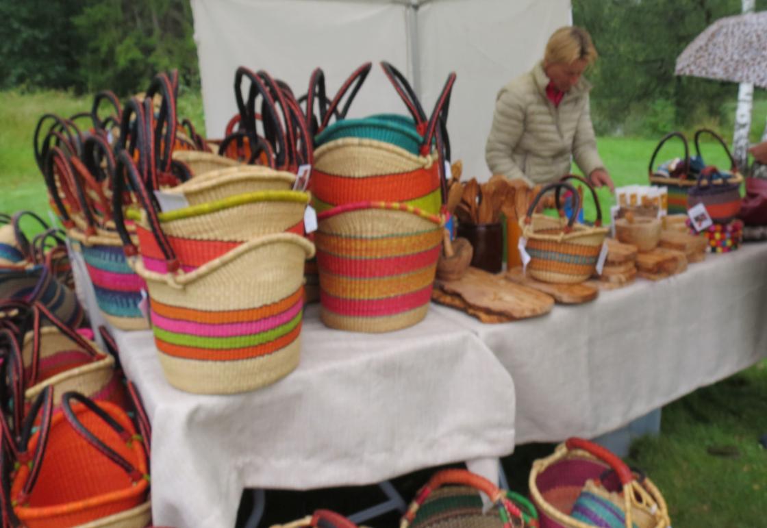 Så også i år - med tema Kaffe og med bugnende grønnsakstand og bakestand, rømmegrøt og boller, utstillere i farverike telt og paraplyer i alle regnbuens farver. Ja, for det regnet - Men det satte såvisst ikke noe demper på smilene og handlegleden. Publikum tukket seg innunder det store teltet hvor langbord og benker sto tett i tett - tok utflukter ut til bodene og kom tilbake for å varme seg på en kaffe kopp. Temautstilling med kaffeposeskjørt etter eget design for de medvirkende bygdekvinner på den standen, Aluminiumsmuseet i Holmestrand med et utvalg kaffekanner fra deres produksjon, spåkjerring og LilleHolmestrand med markedskaffe samt en utstilling av kaffekverner og kaffebrennere, kaffekjeler og tilbud om kurs i å lage kaffegrutsåpe!